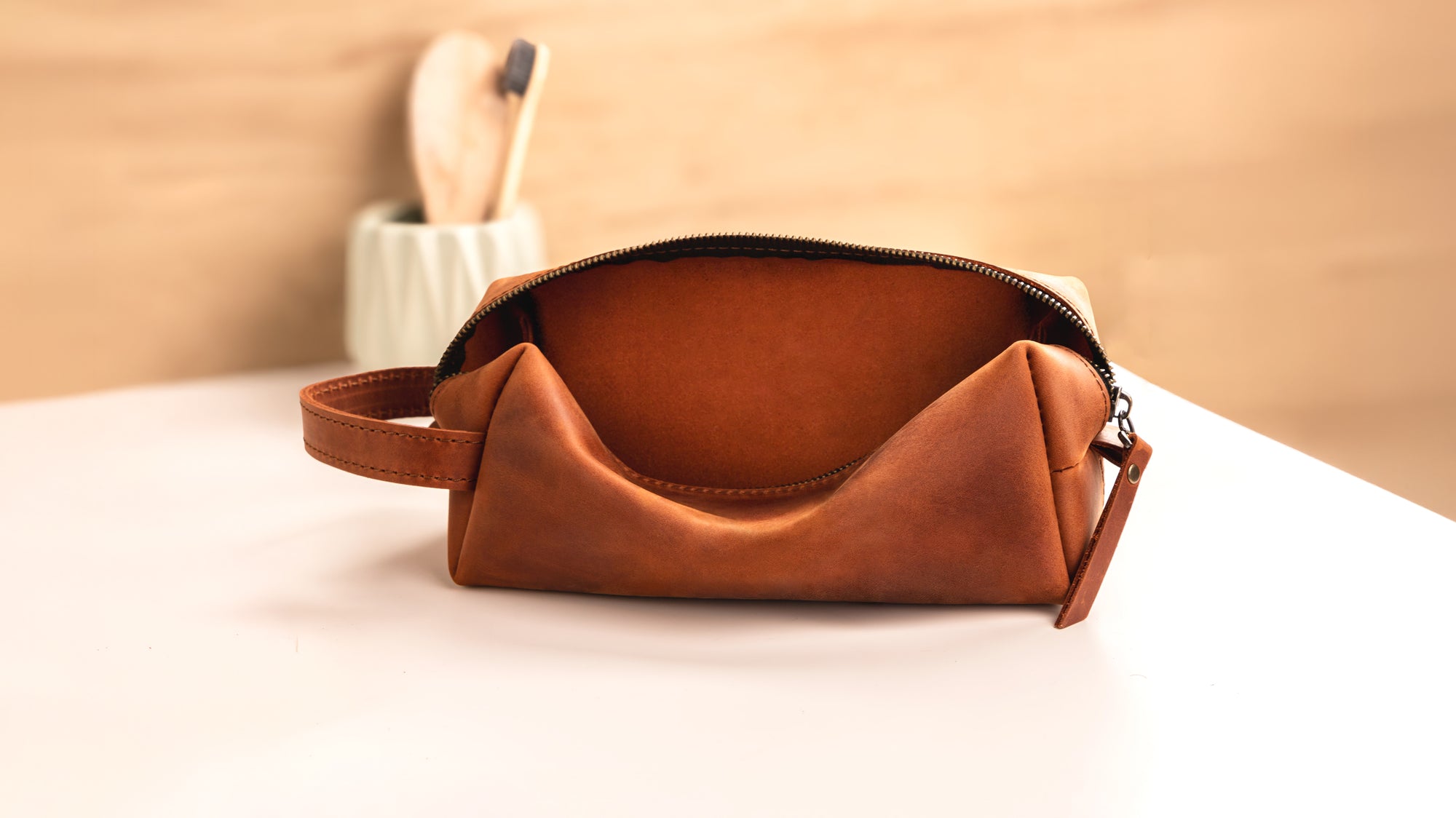 Compact and elegant, this makeup bag, featuring premium leather, offers timeless charm and everyday convenience.