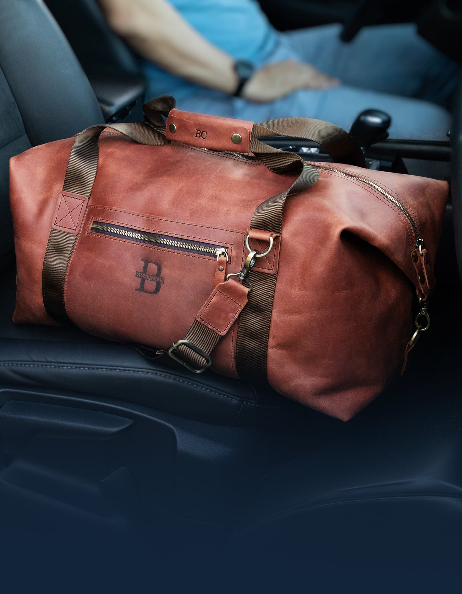 This spacious duffle bag, handcrafted from full-grain leather,