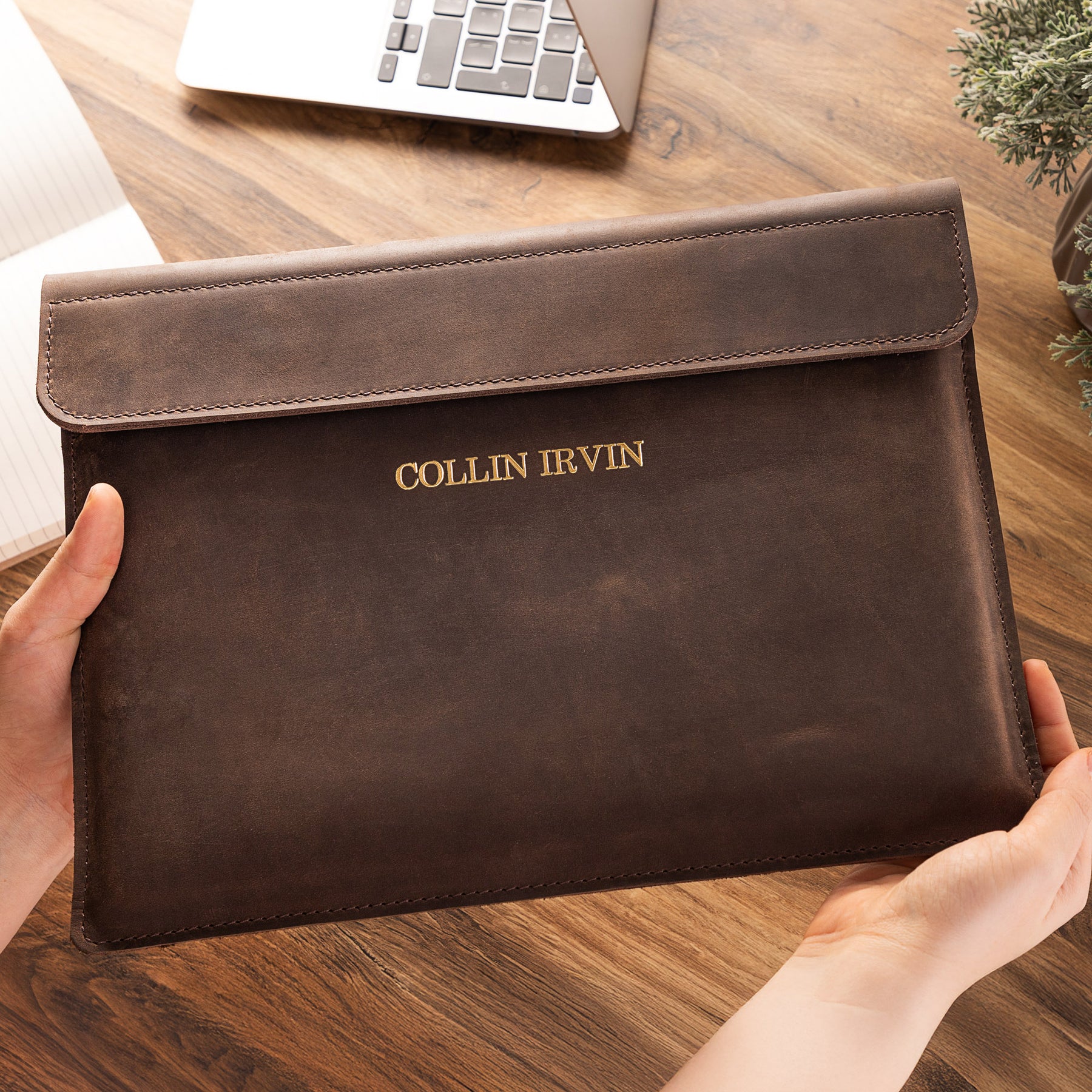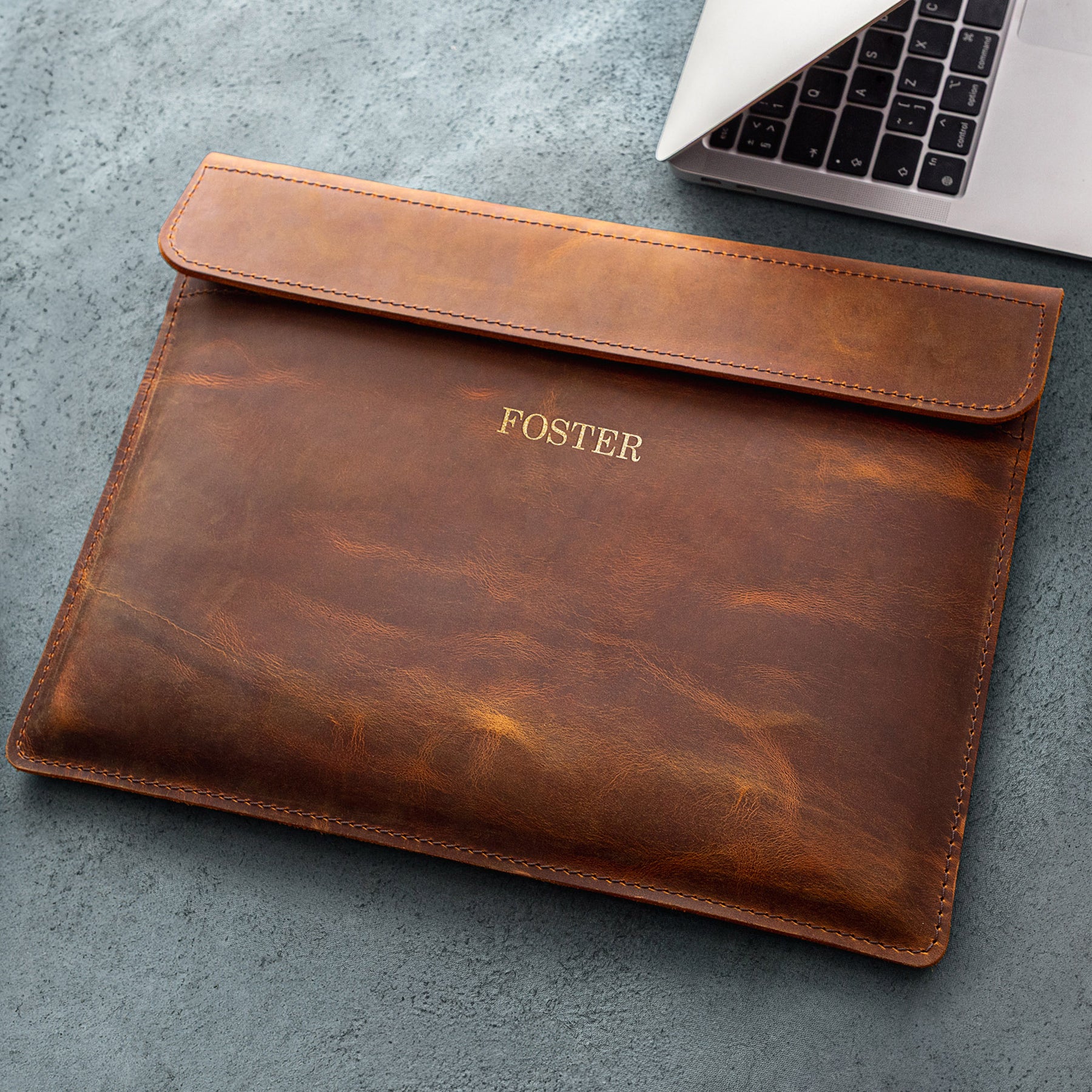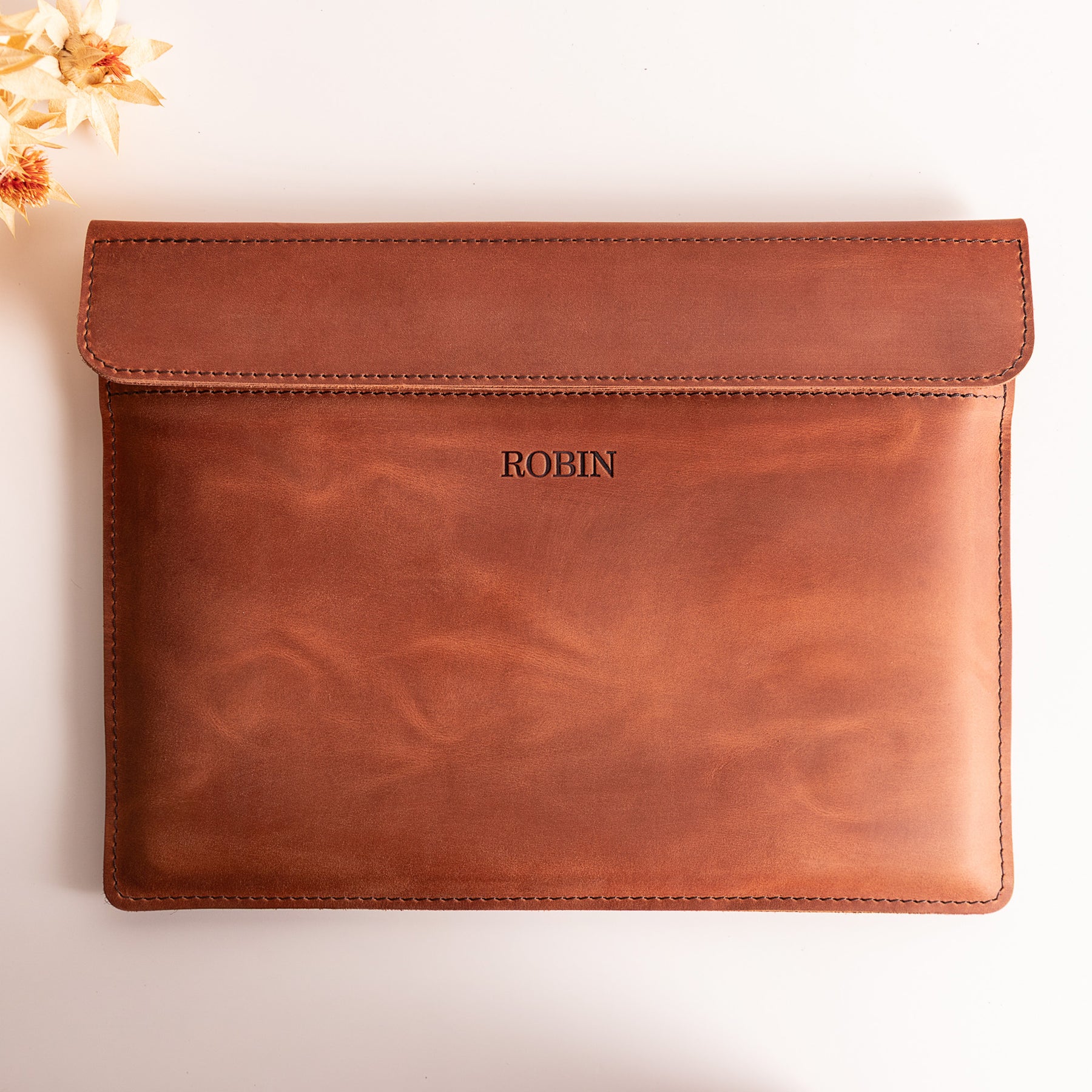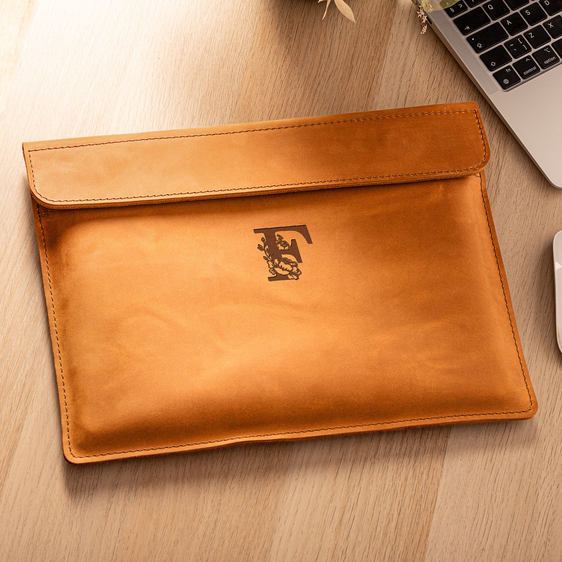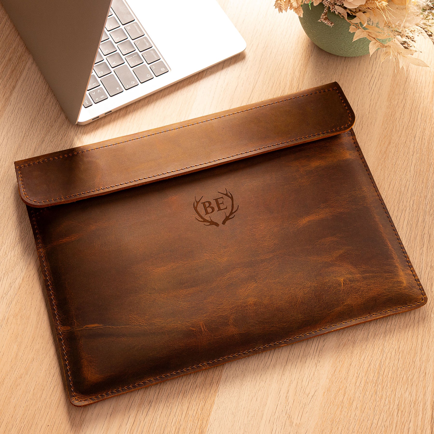 Personalized Leather Laptop Sleeve with magnet closure