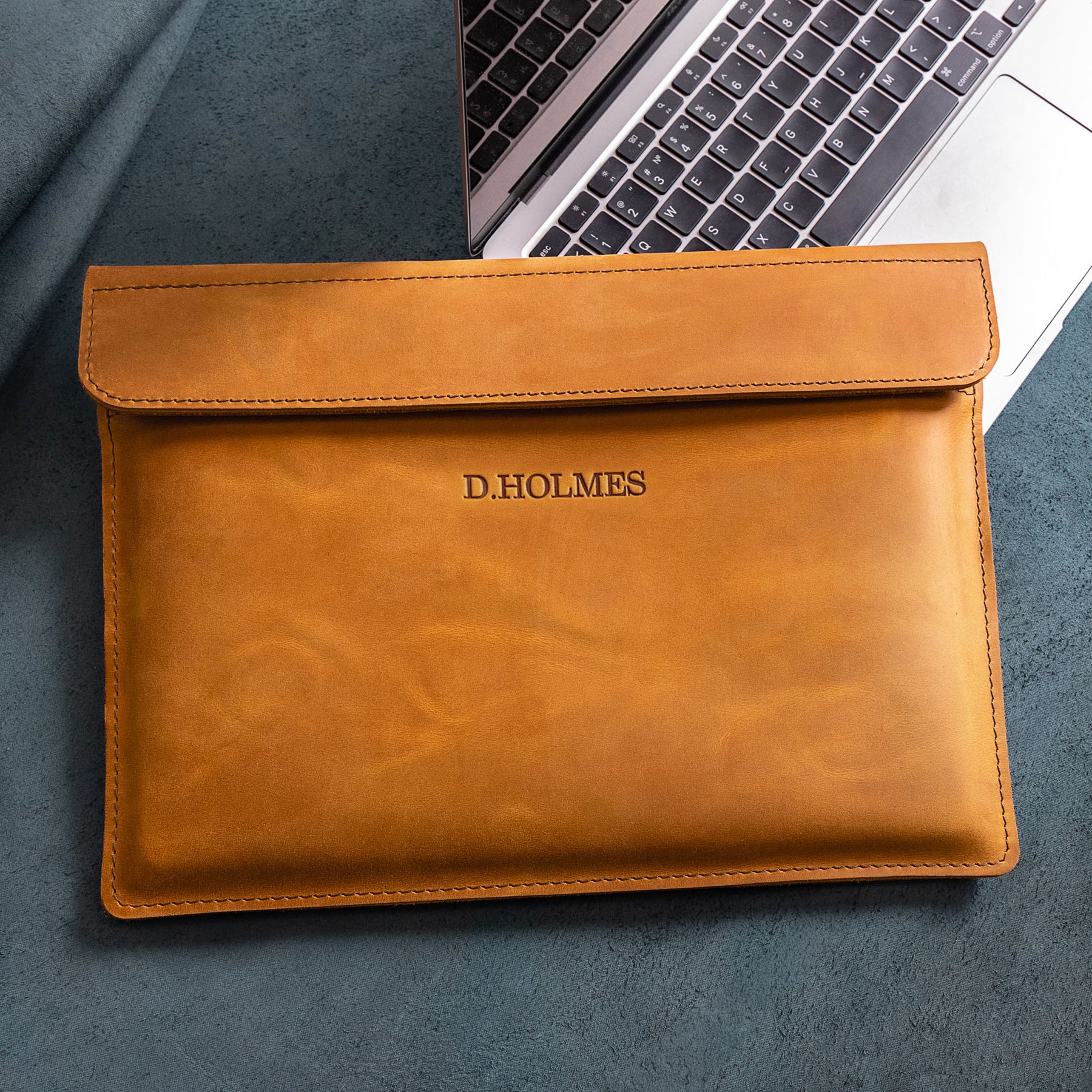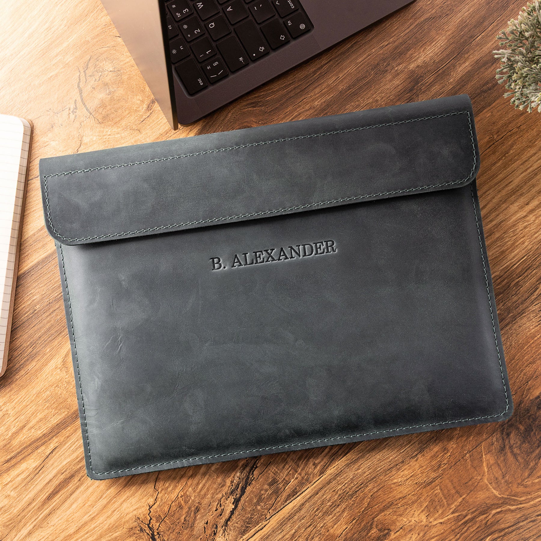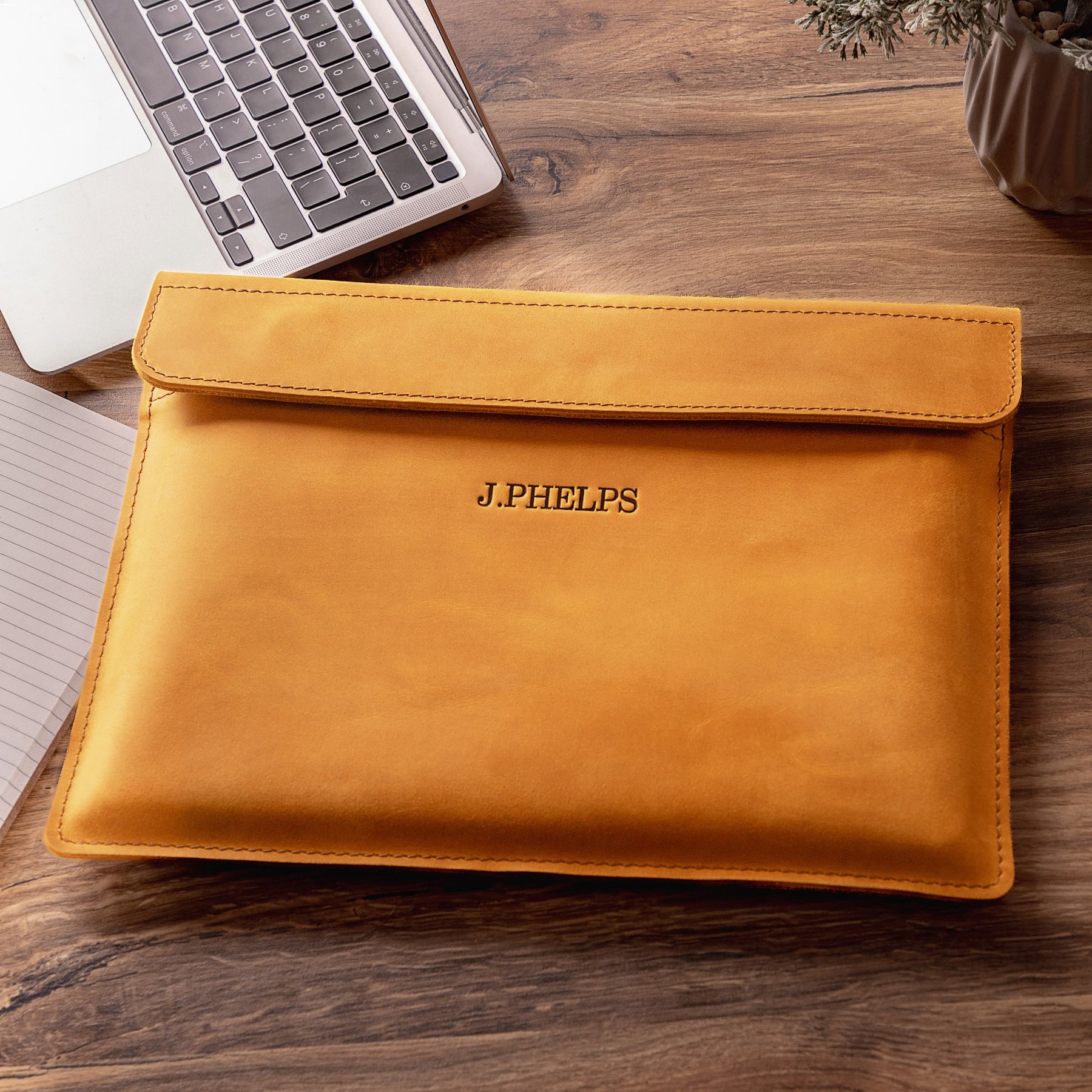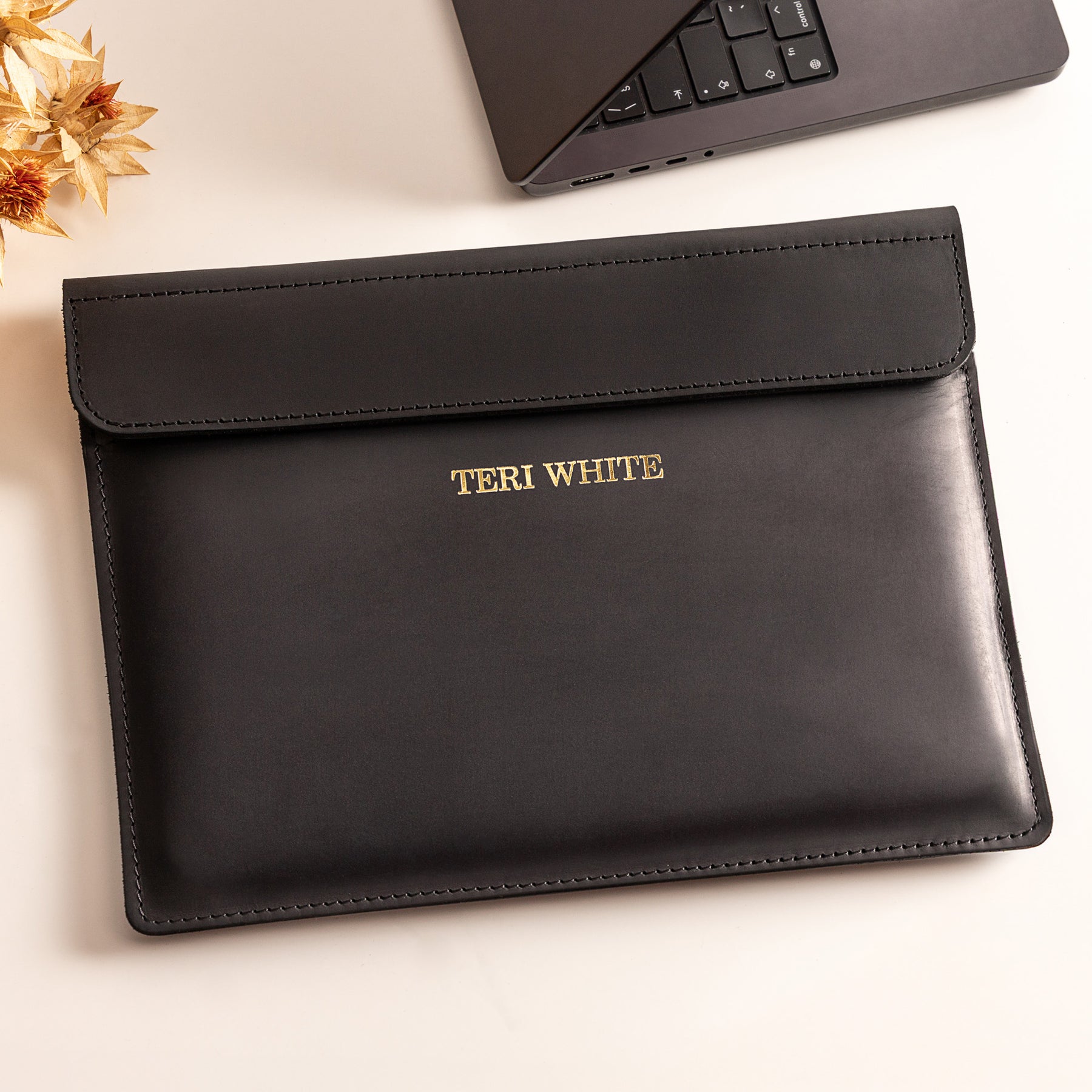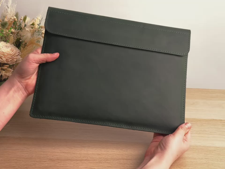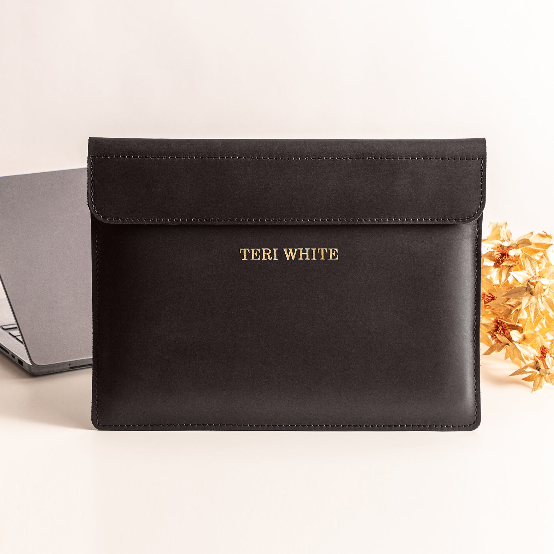 Personalized Leather Laptop Sleeve with magnet closure