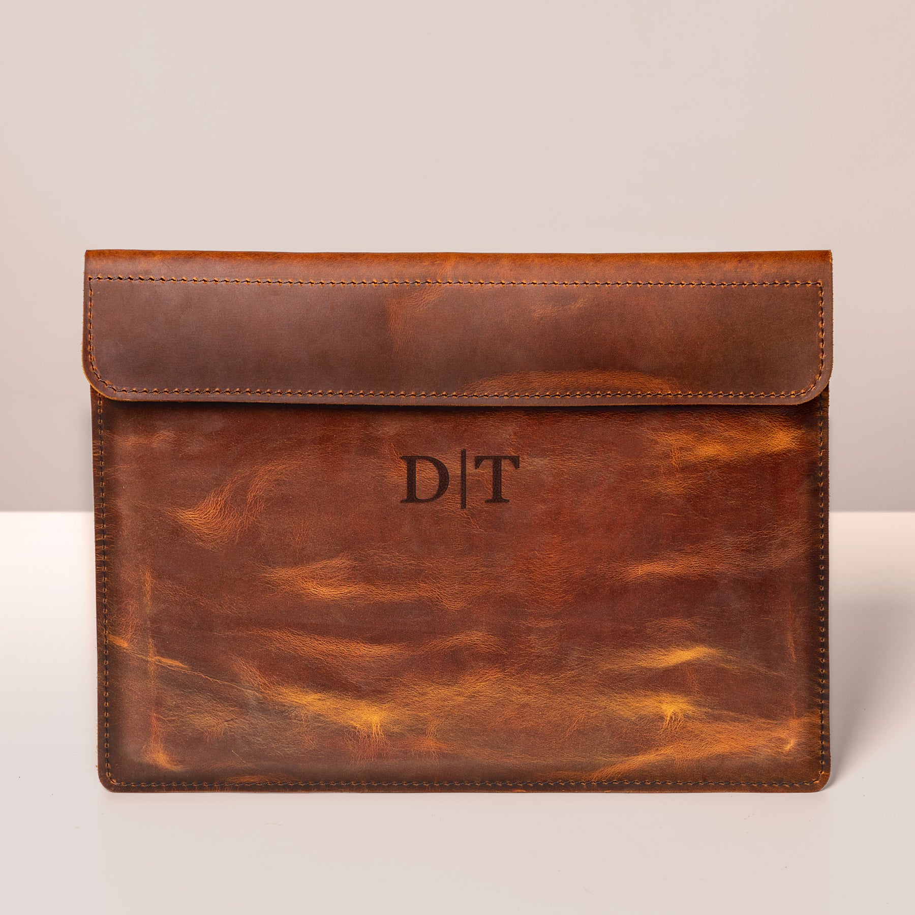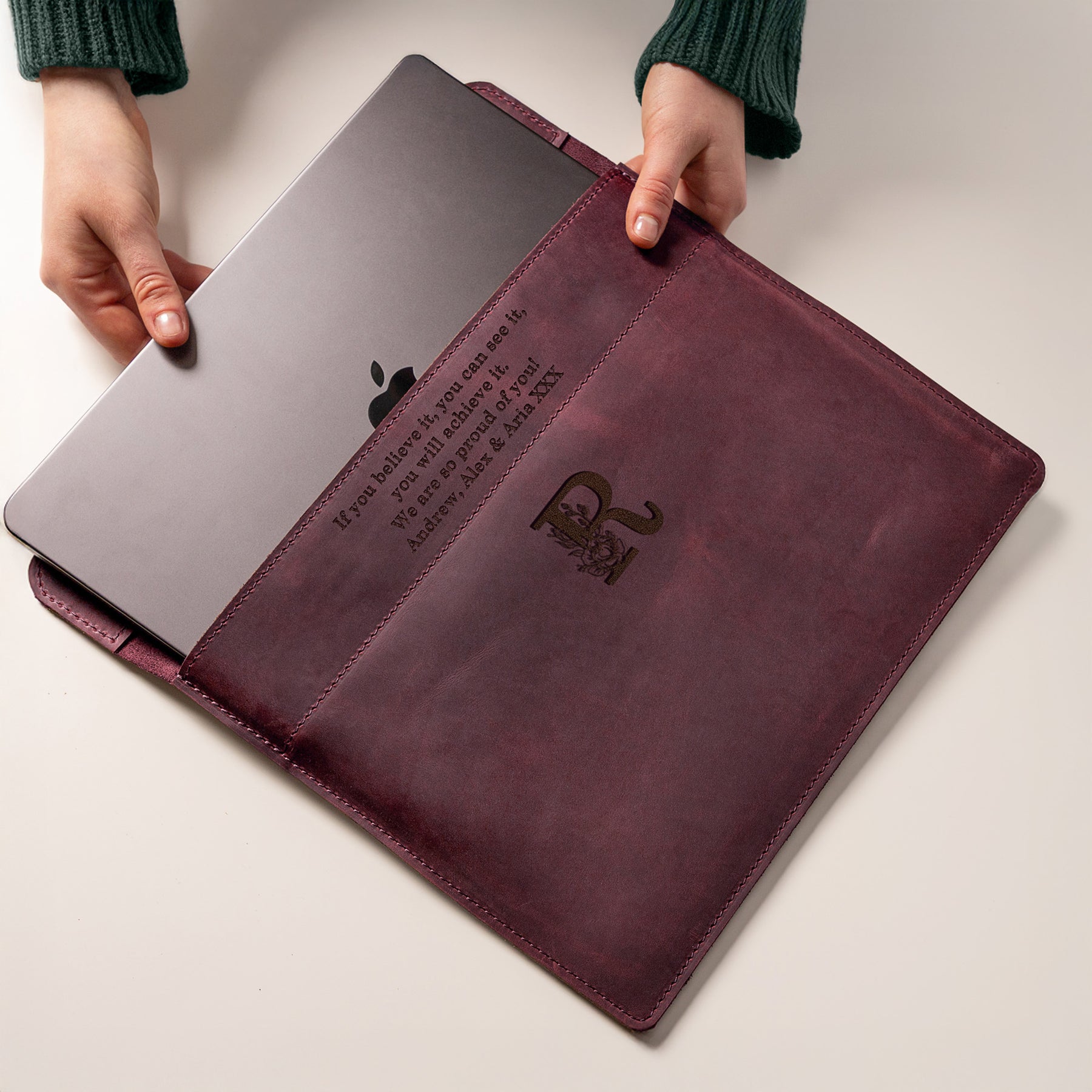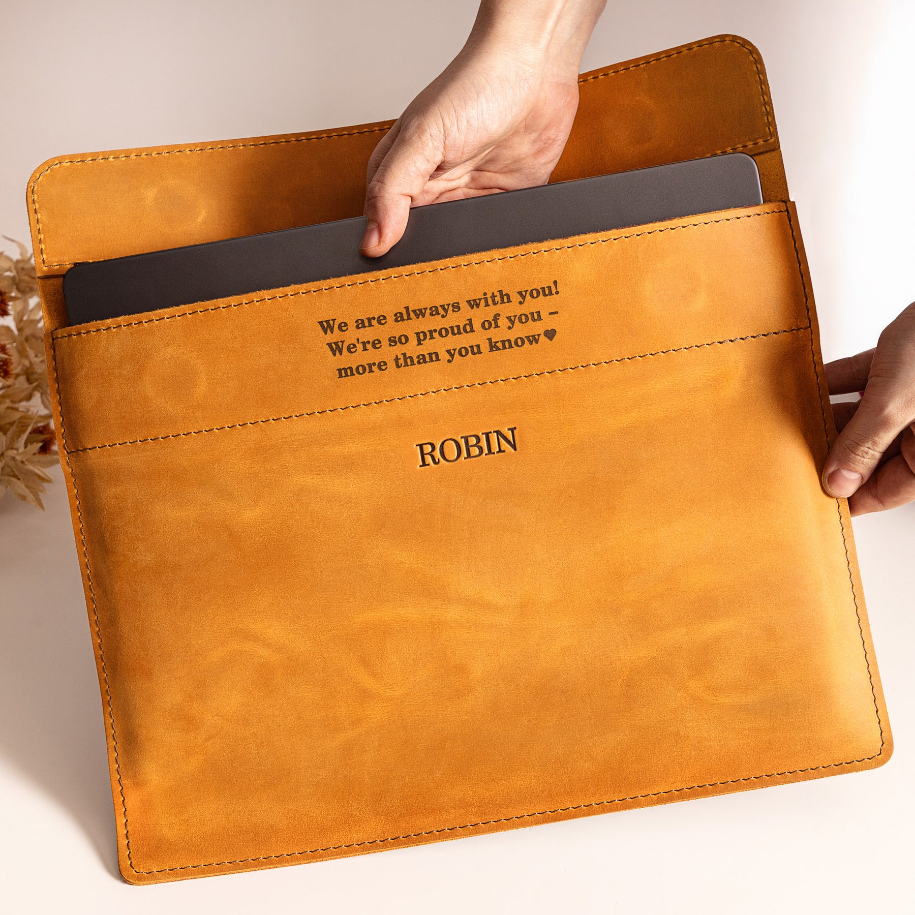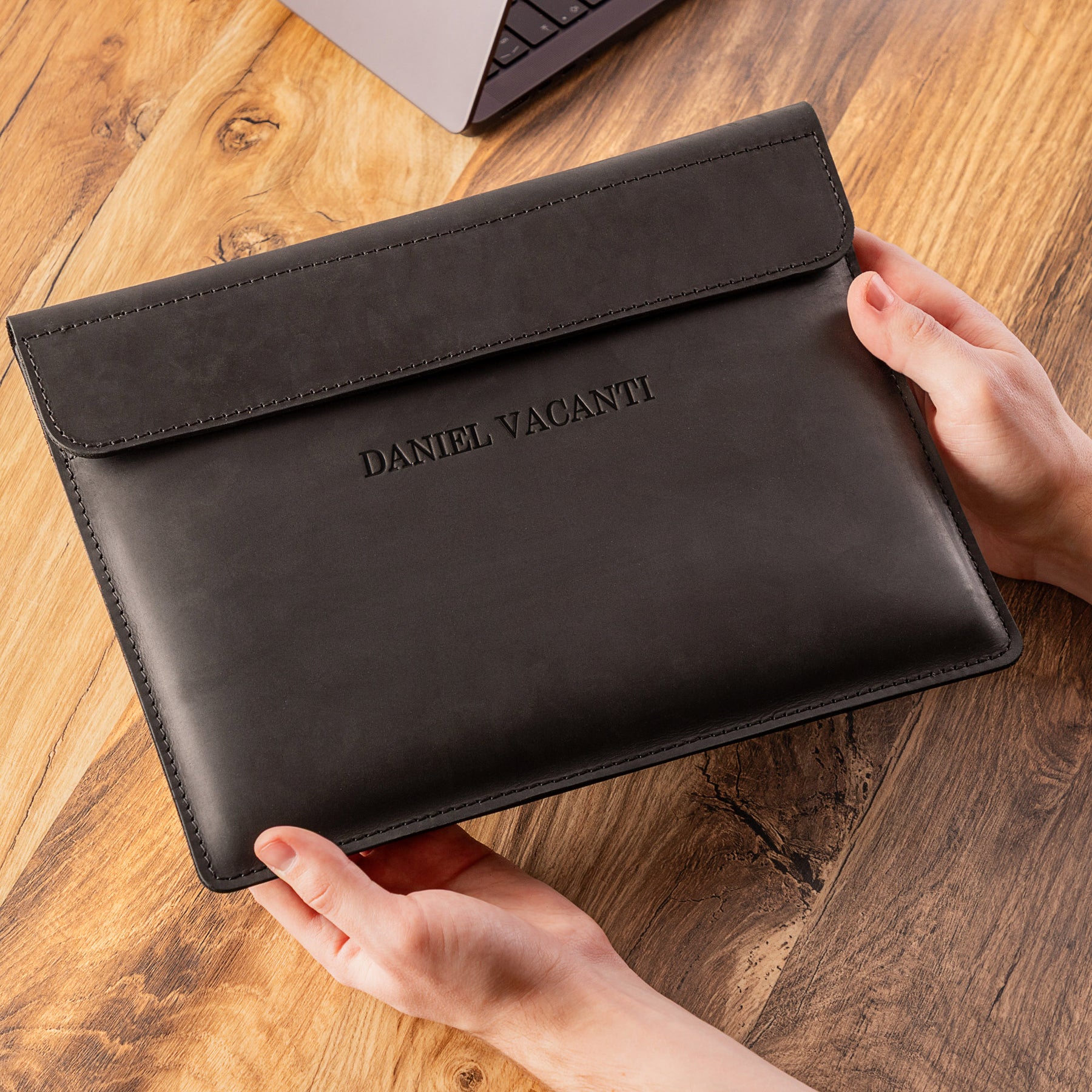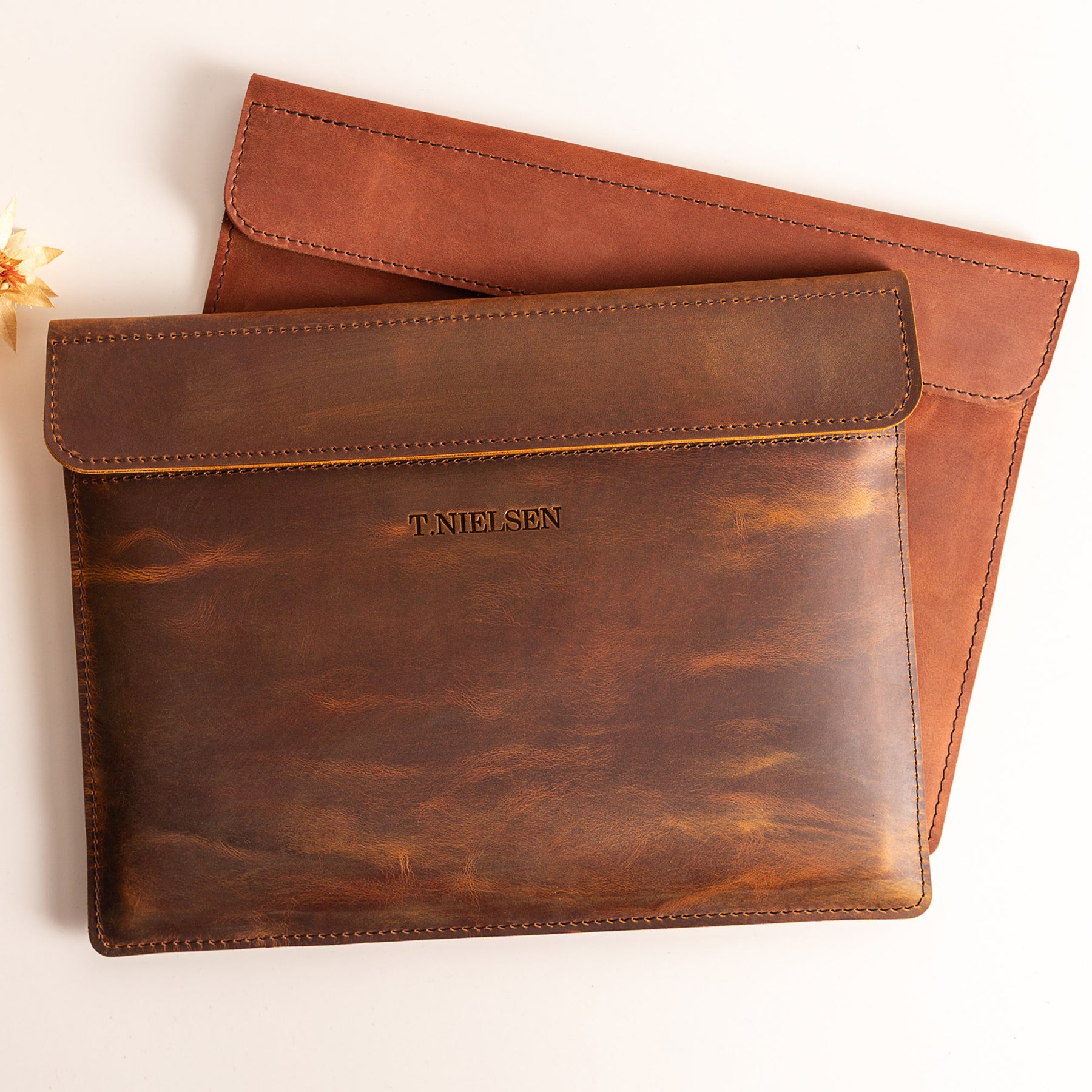 Personalized Leather Laptop Sleeve with magnet closure