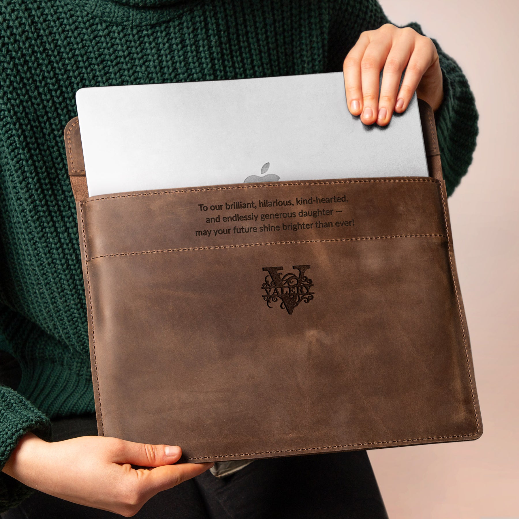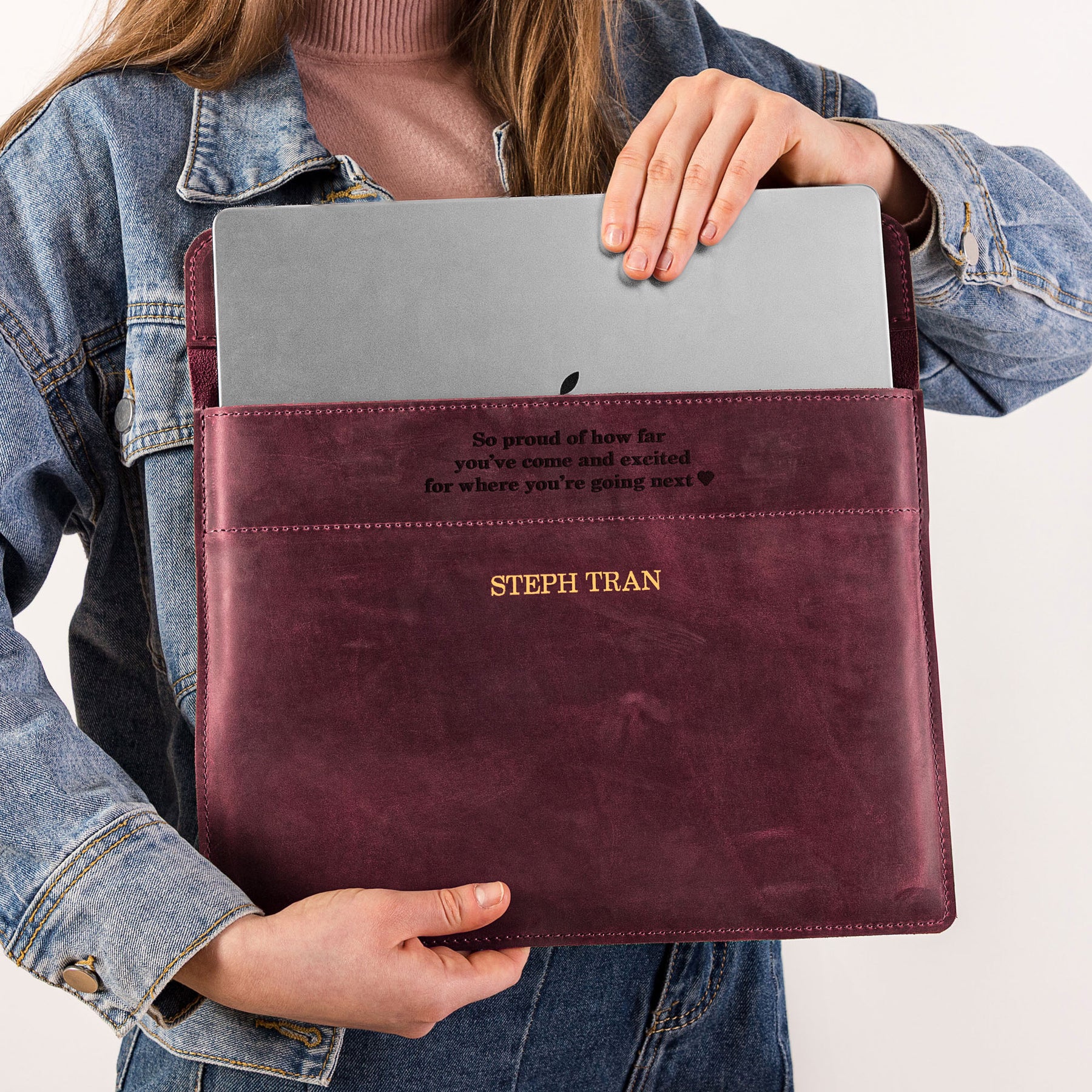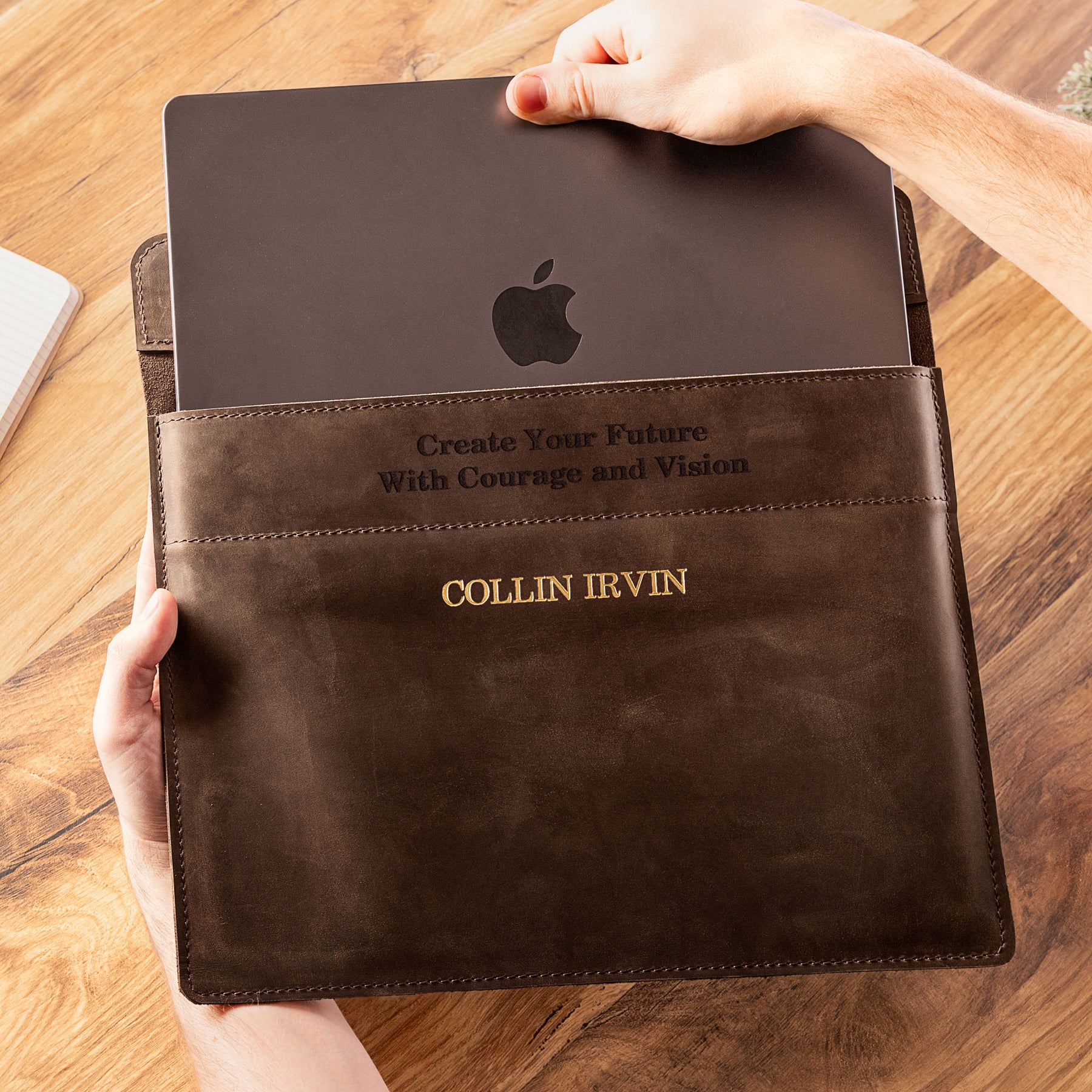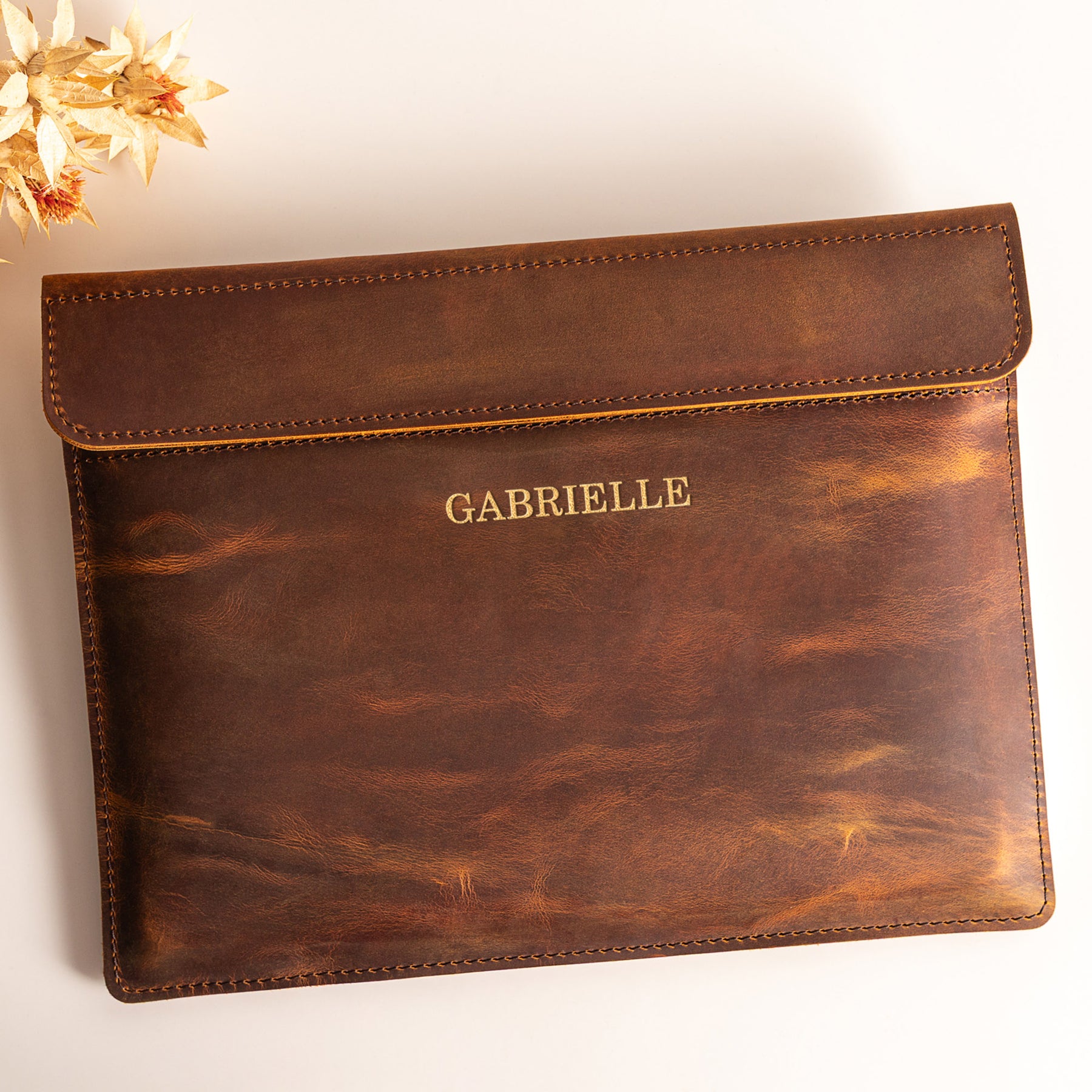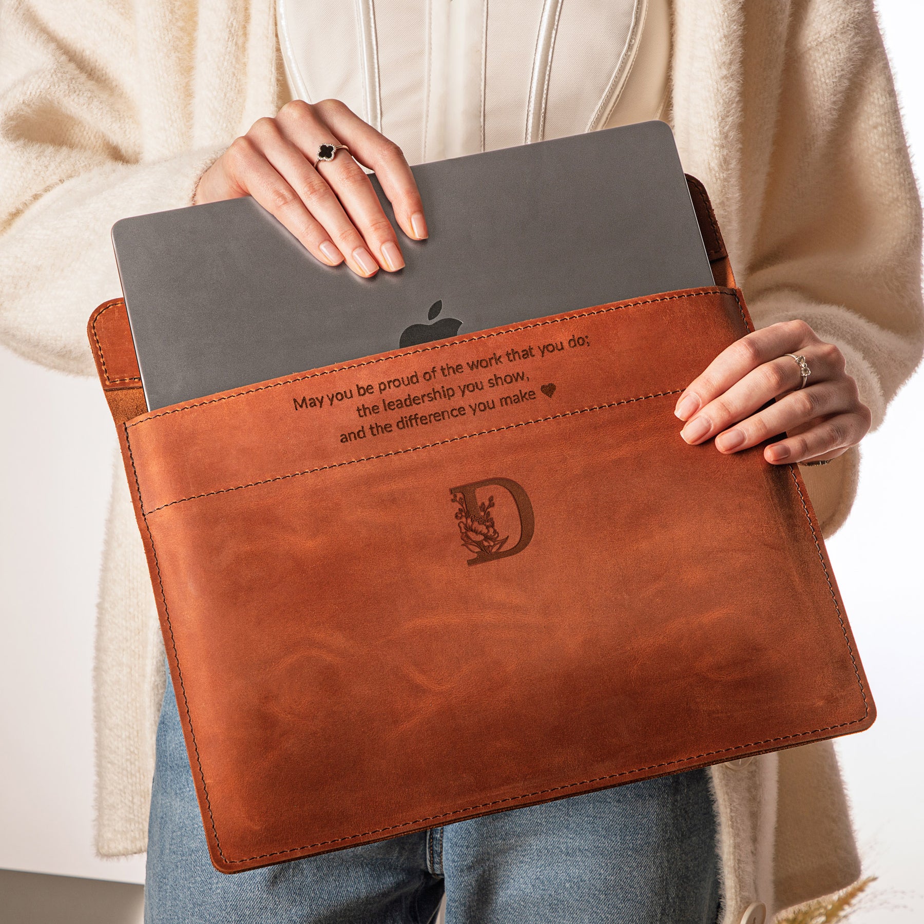 Personalized Leather Laptop Sleeve with magnet closure