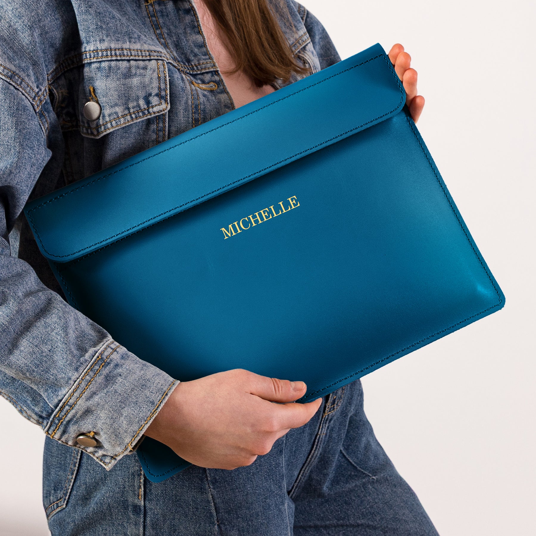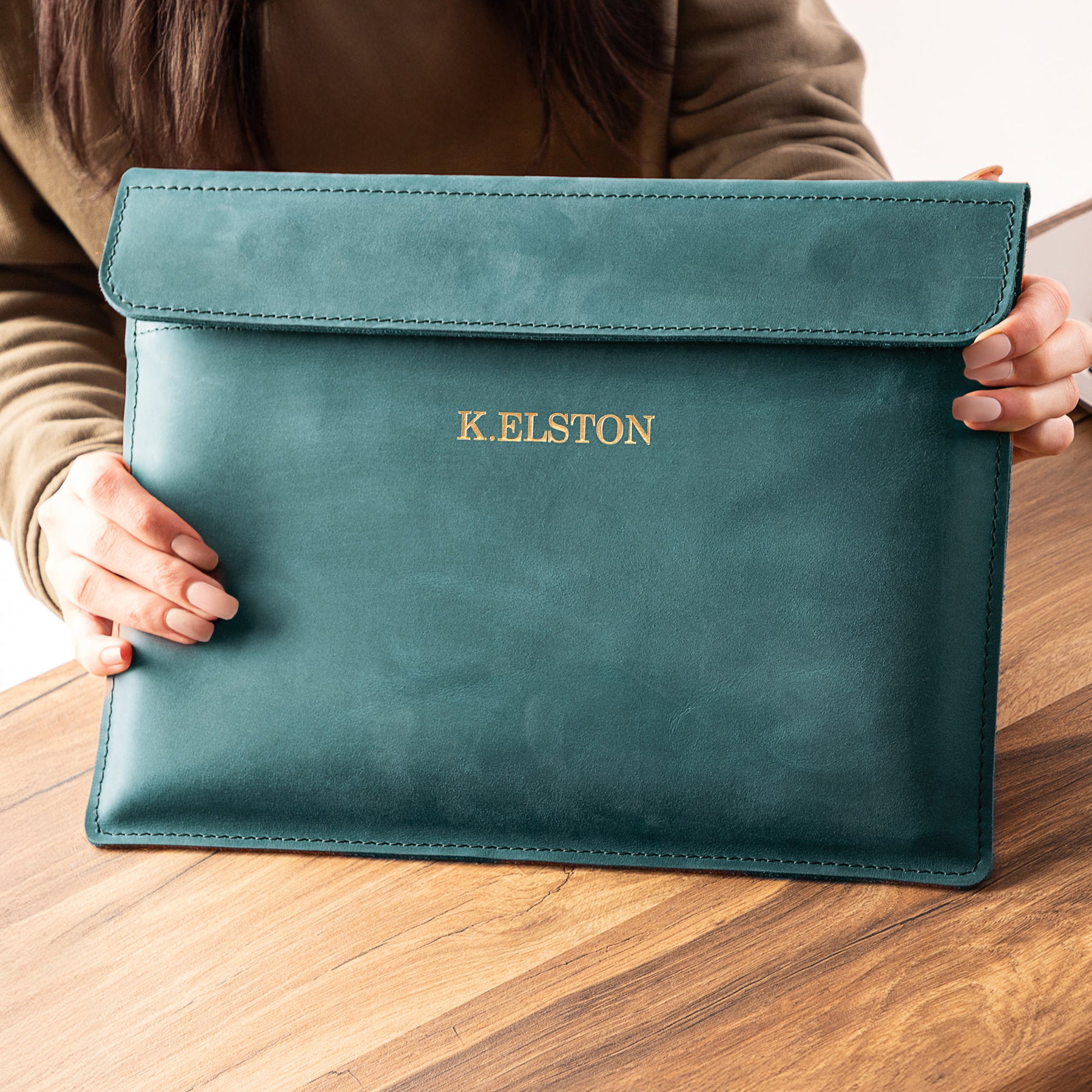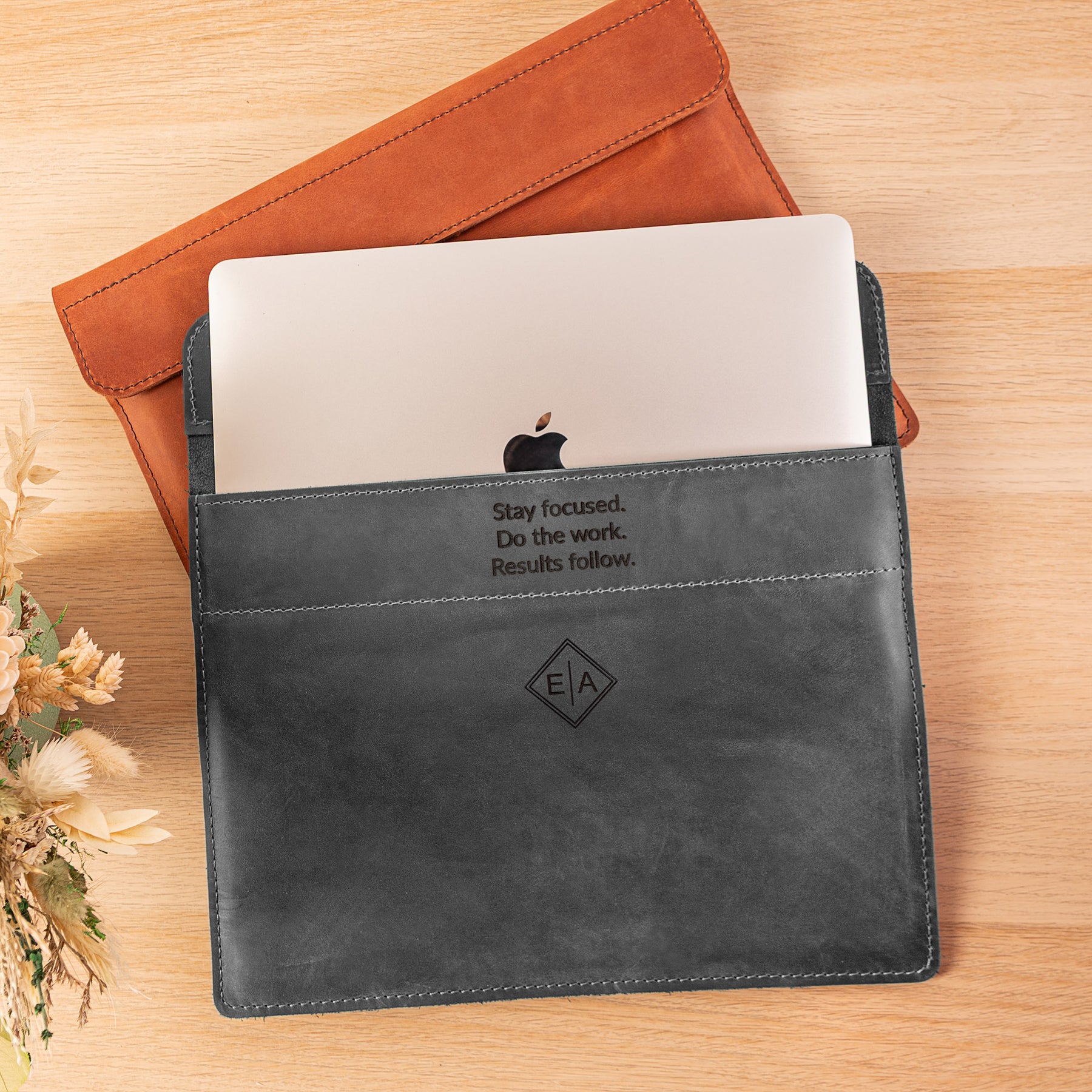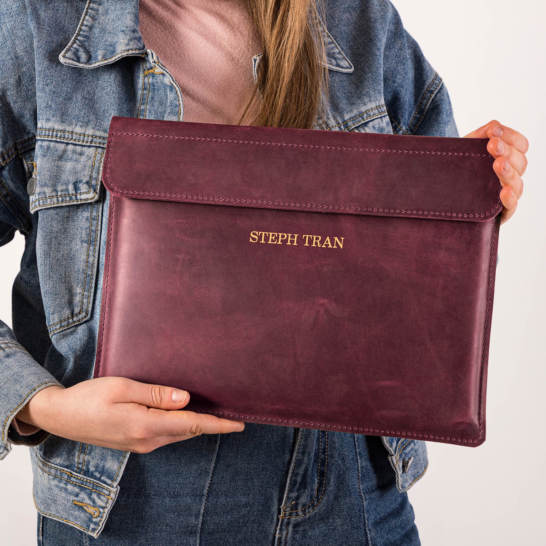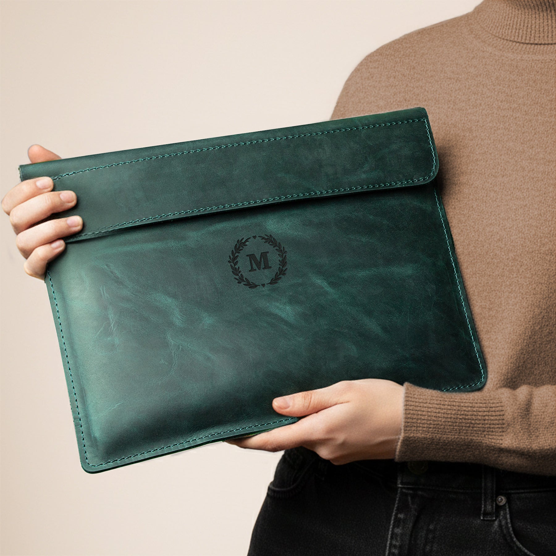 Personalized Leather Laptop Sleeve with magnet closure