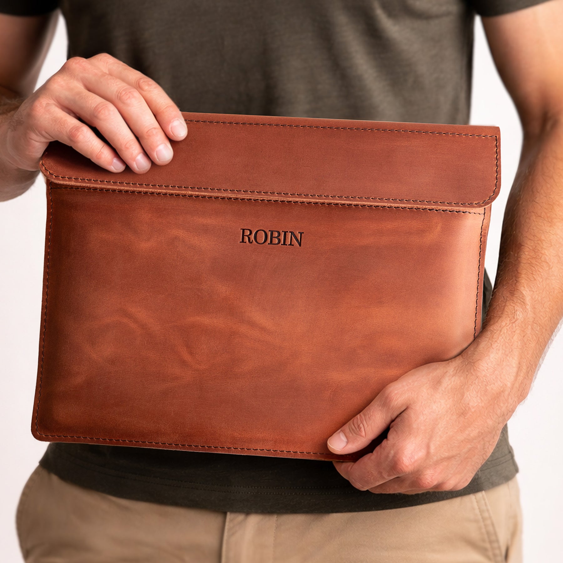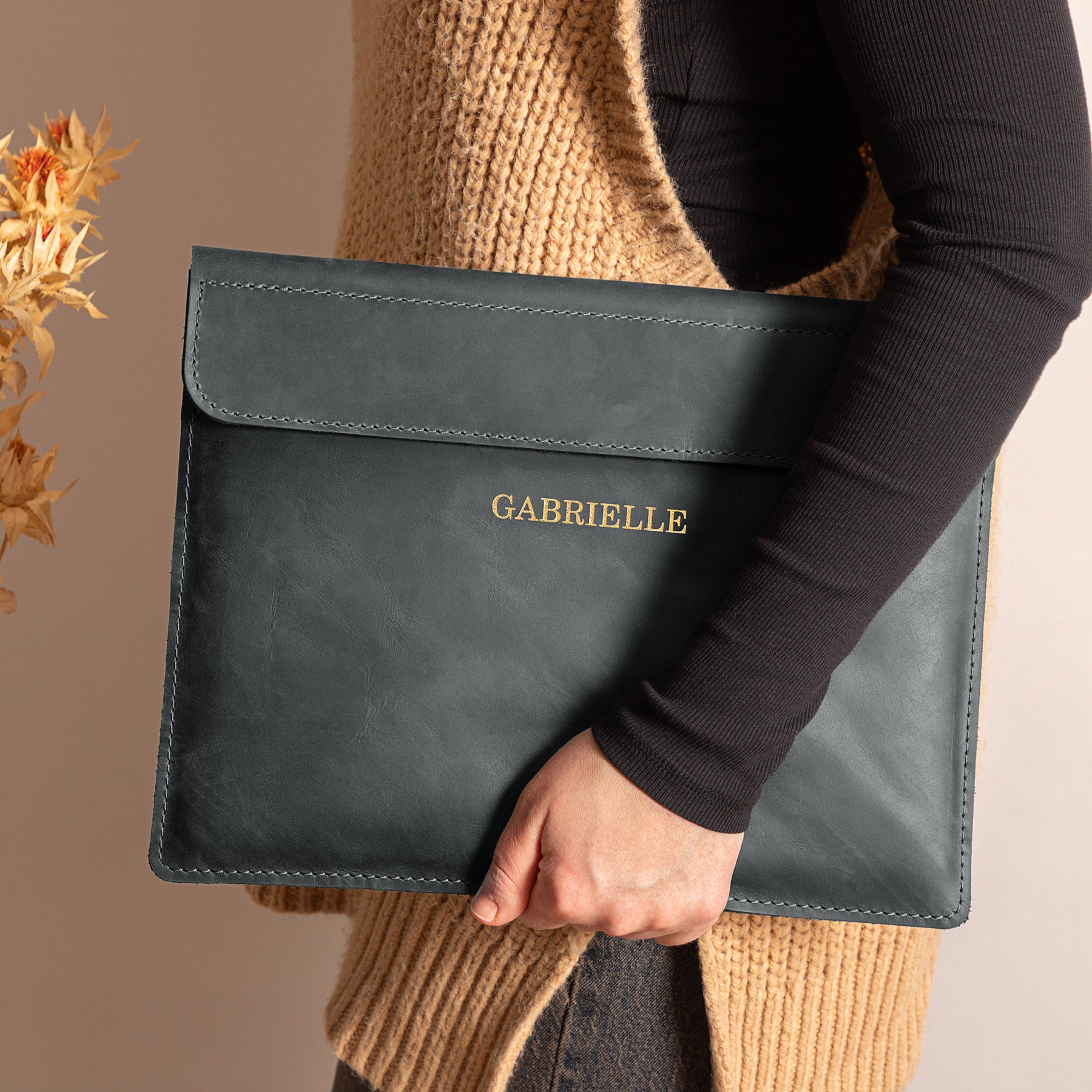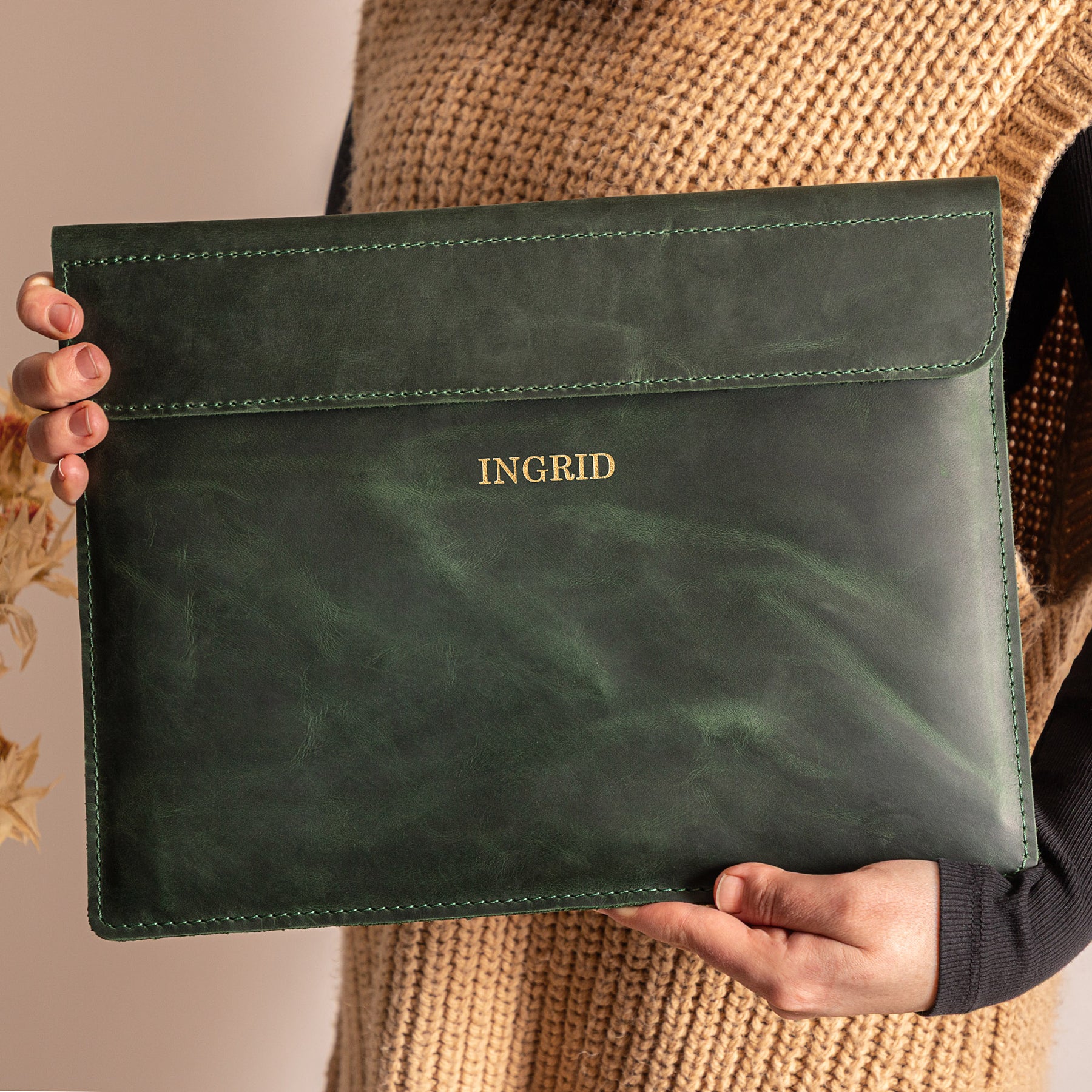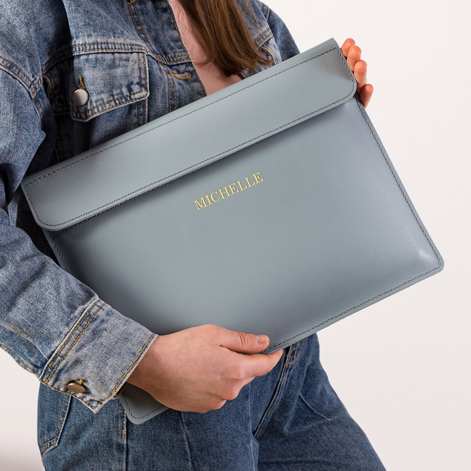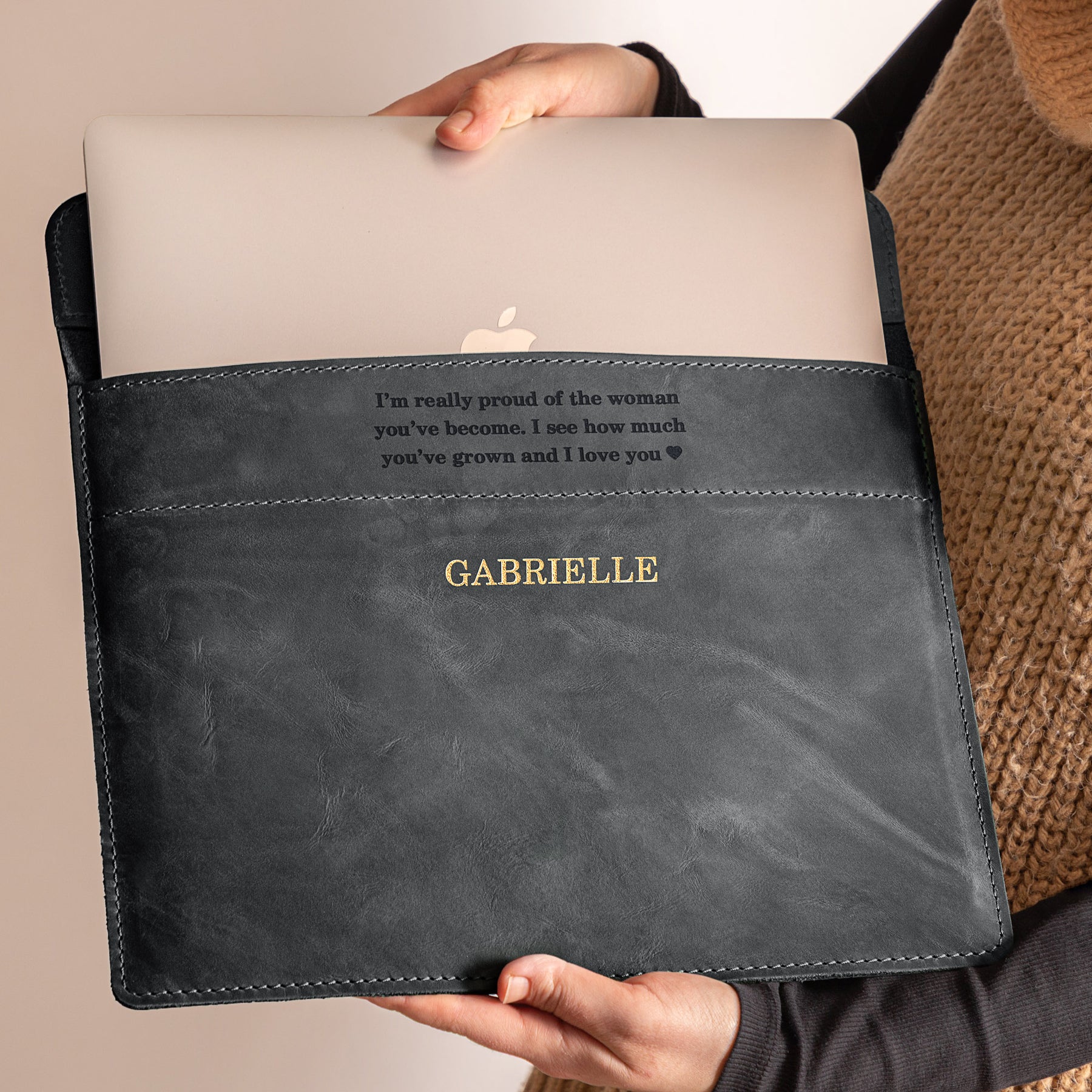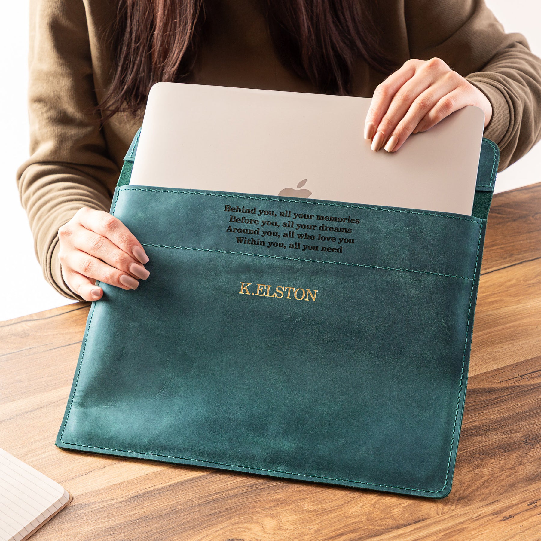 Personalized Leather Laptop Sleeve with magnet closure