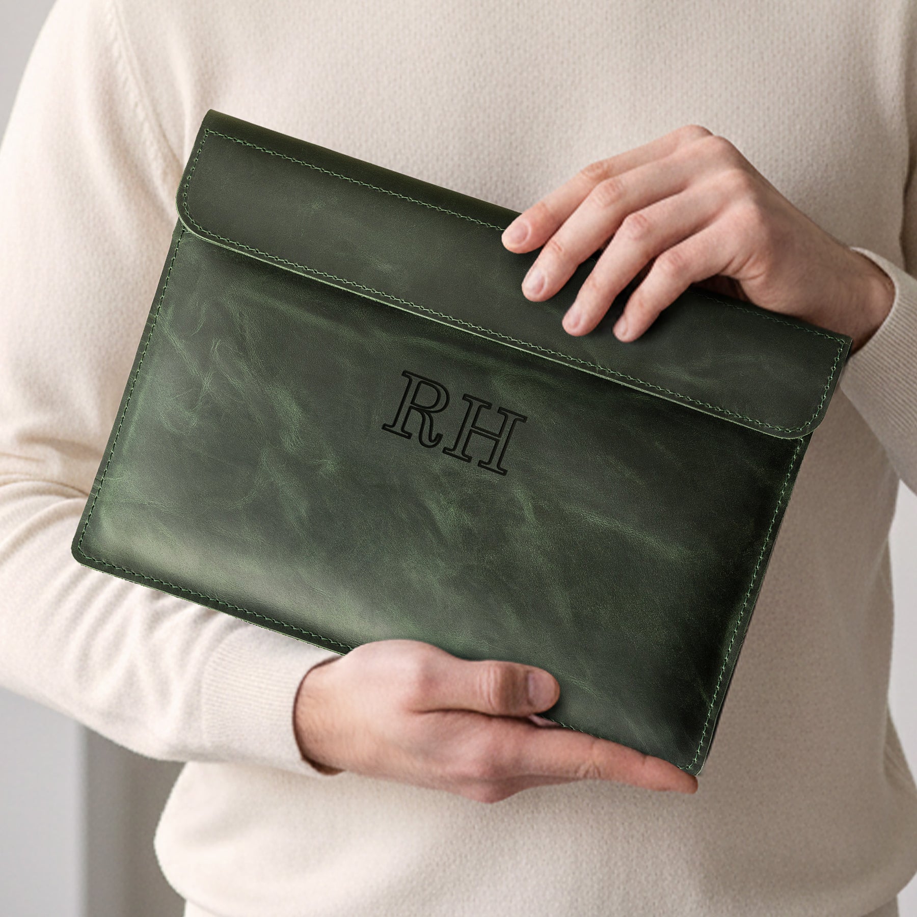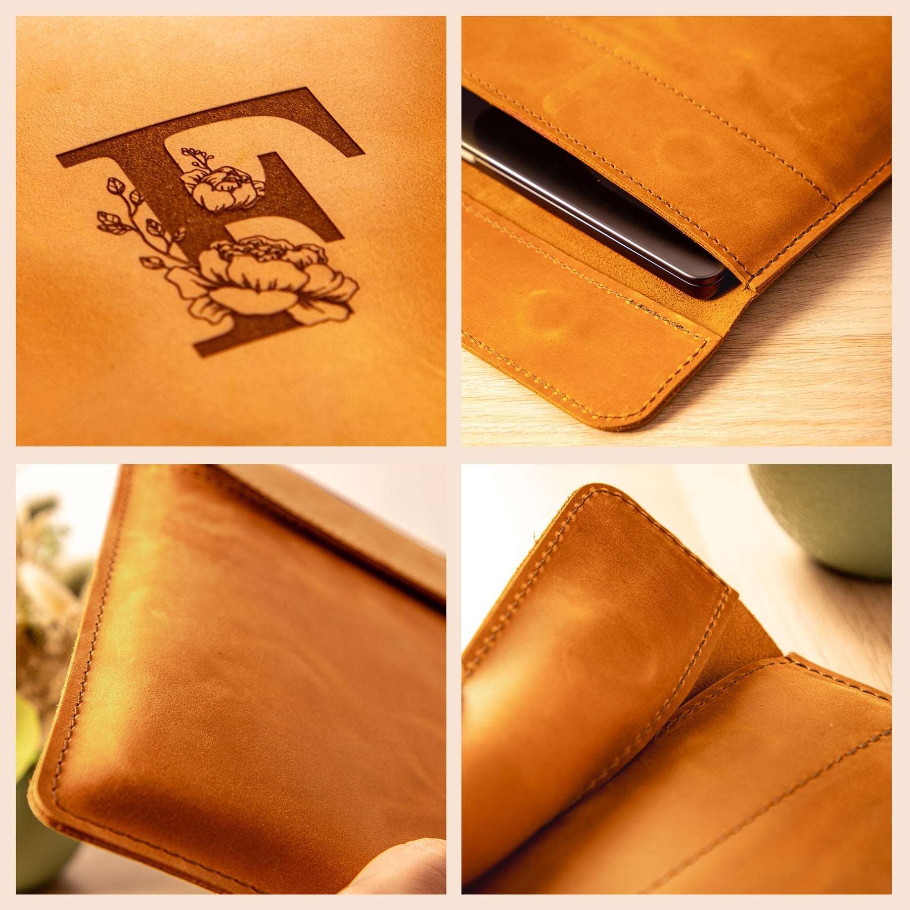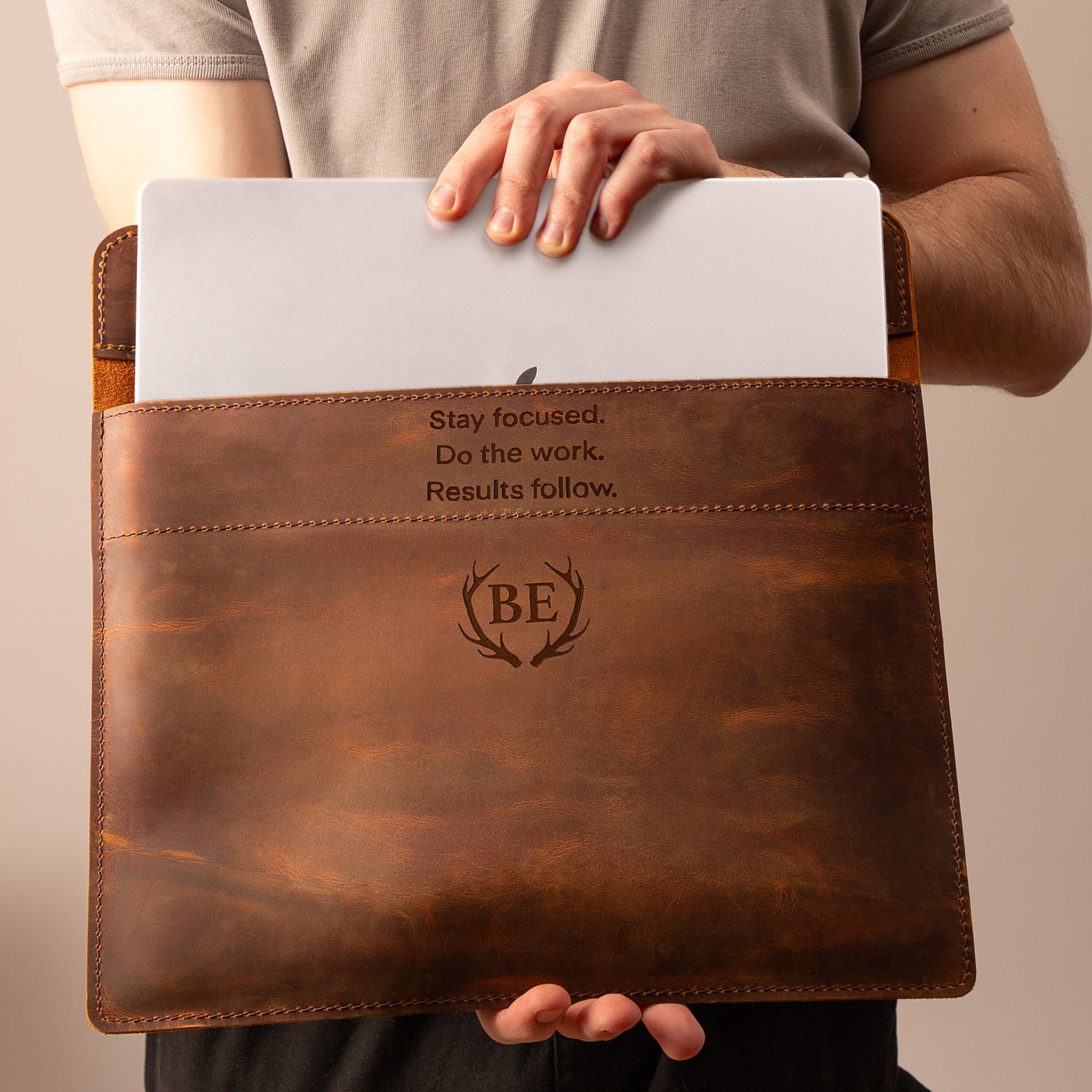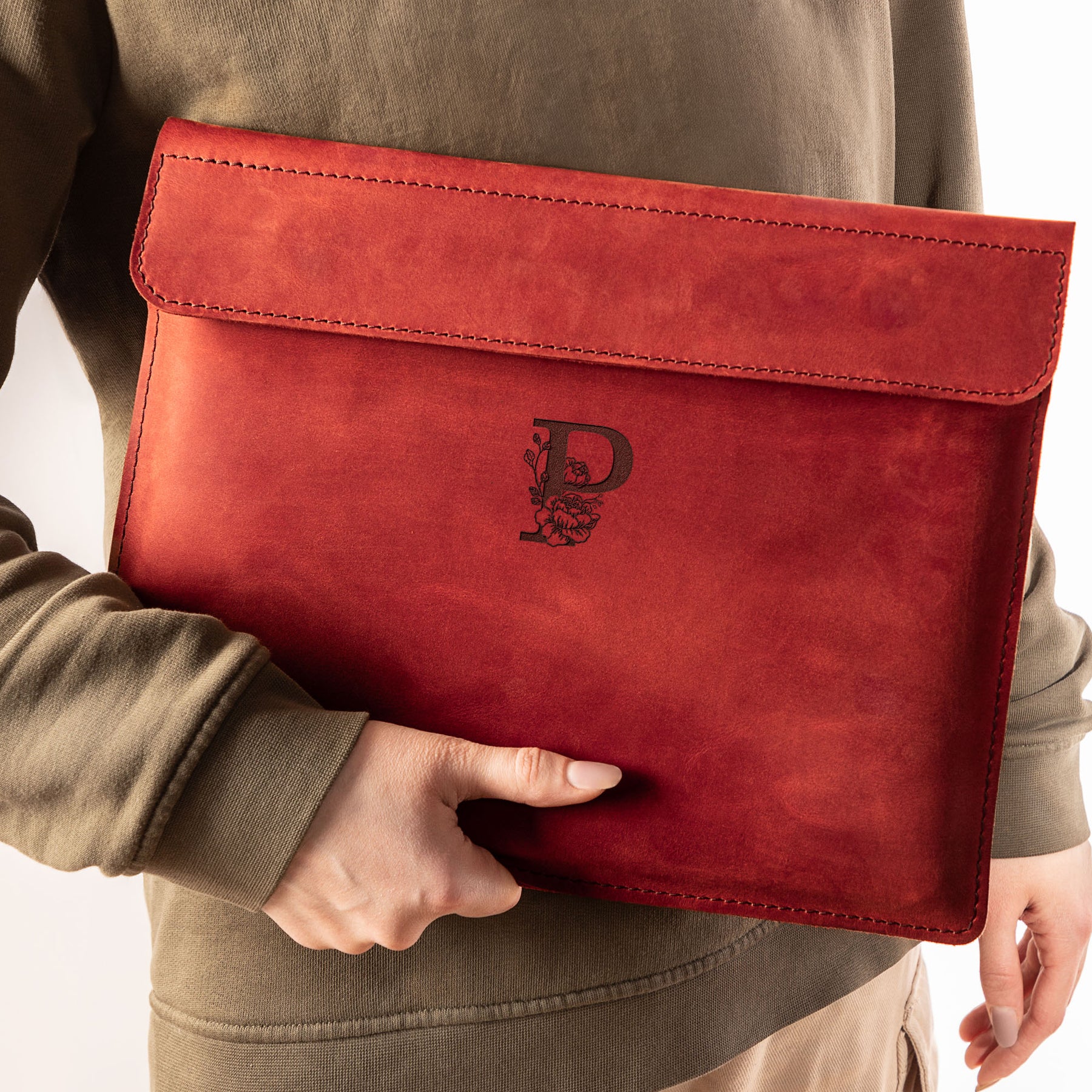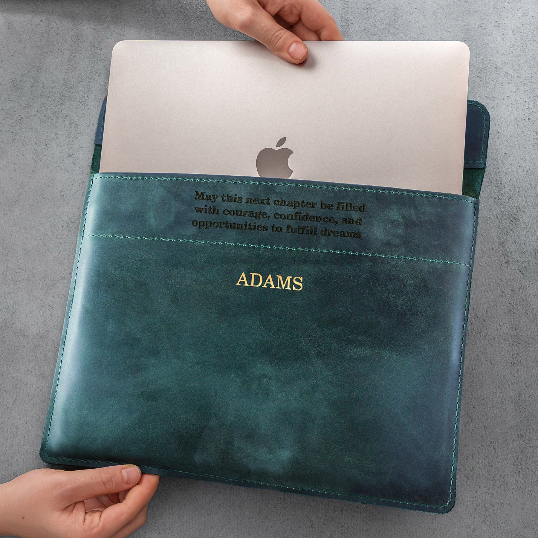 Personalized Leather Laptop Sleeve with magnet closure
