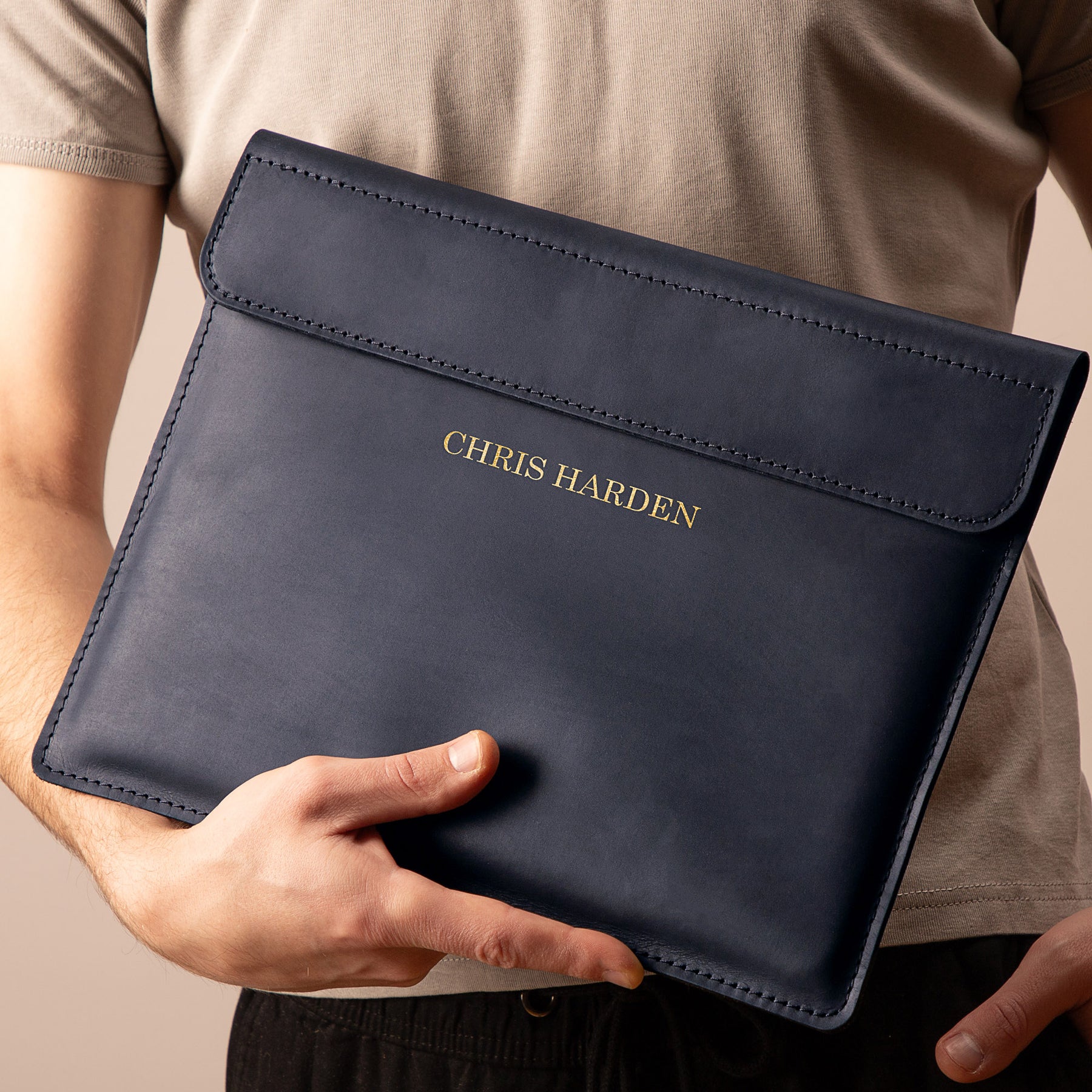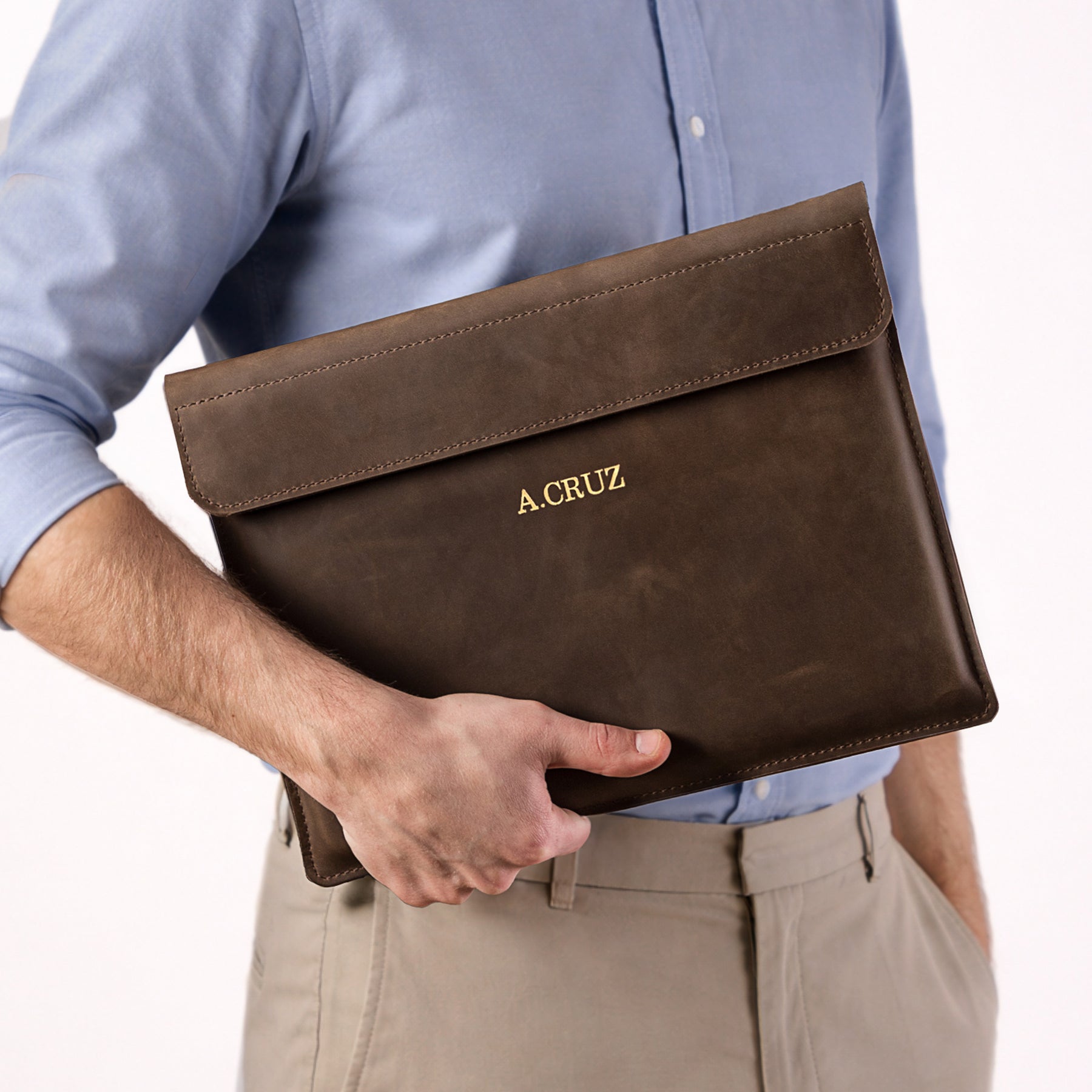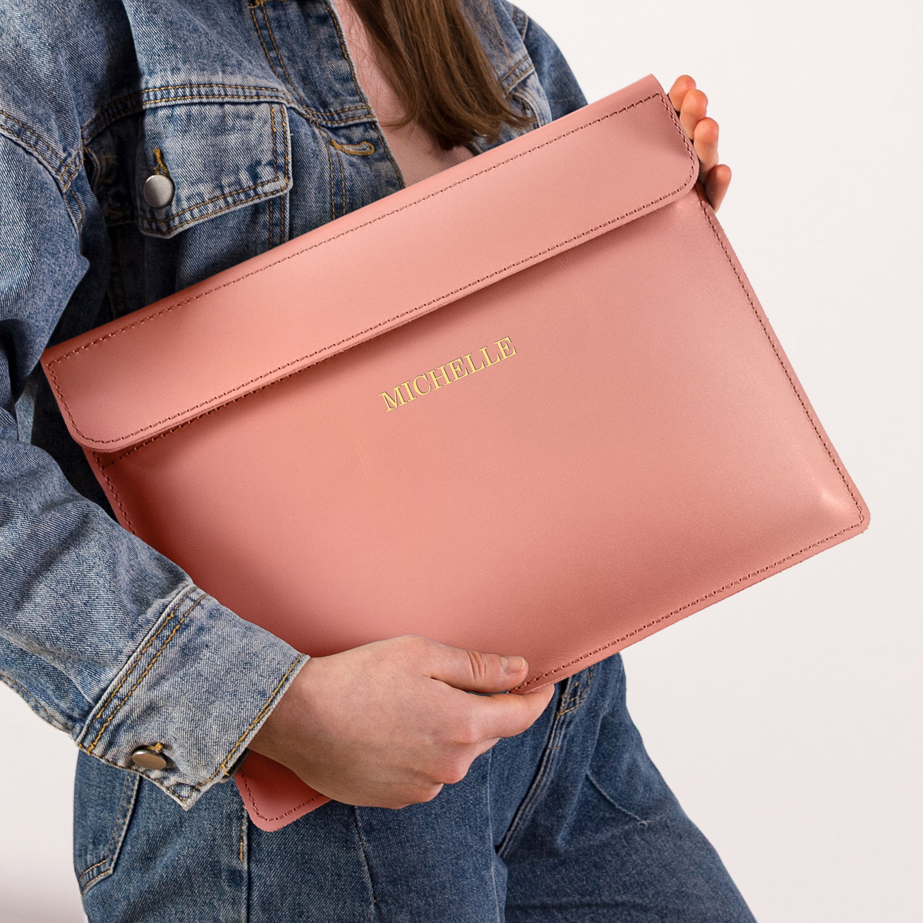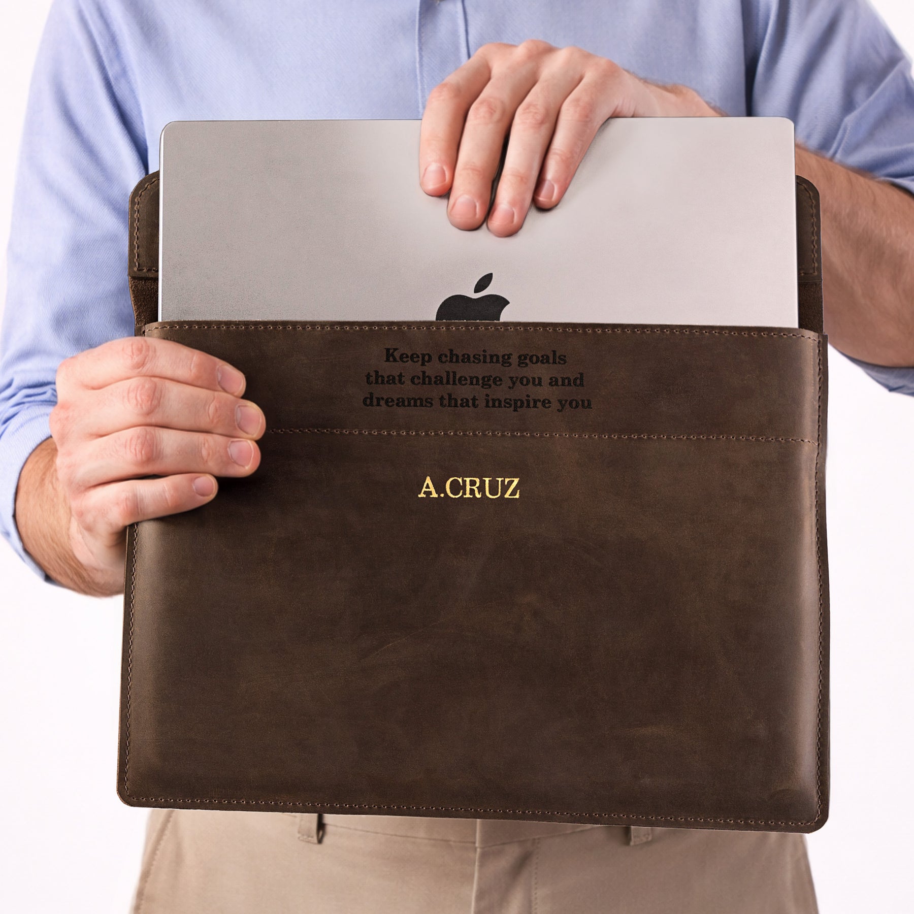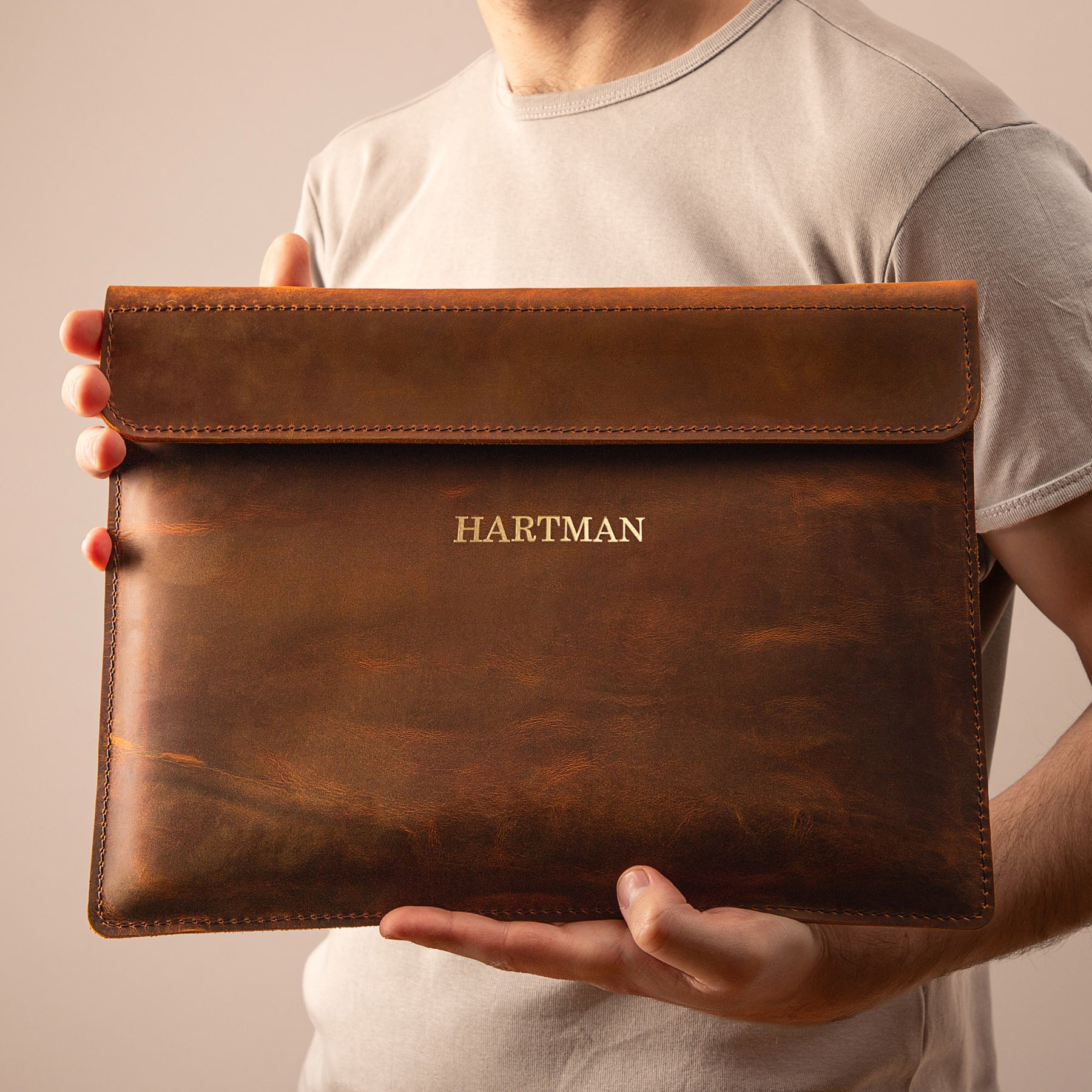 Personalized Leather Laptop Sleeve with magnet closure
